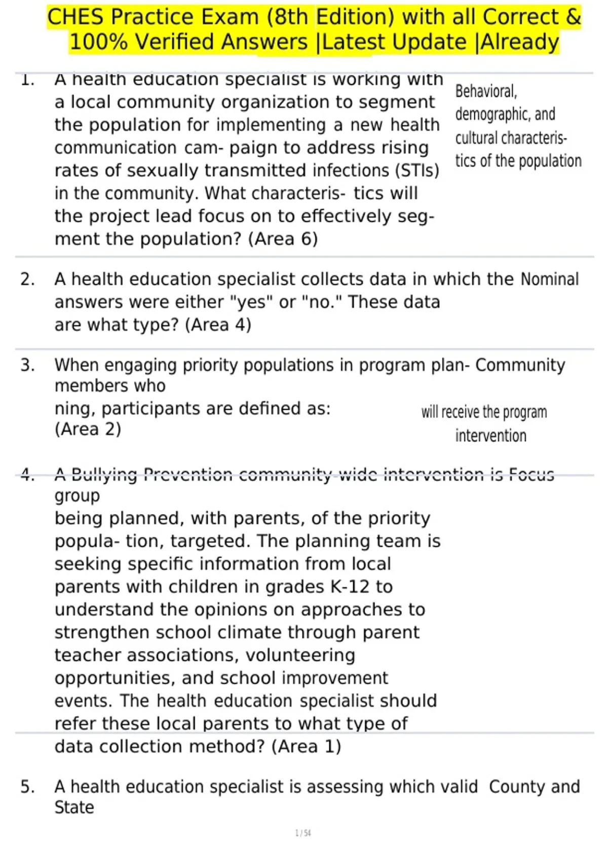 , CHES Practice Exam (8th Edition) with all Correct &