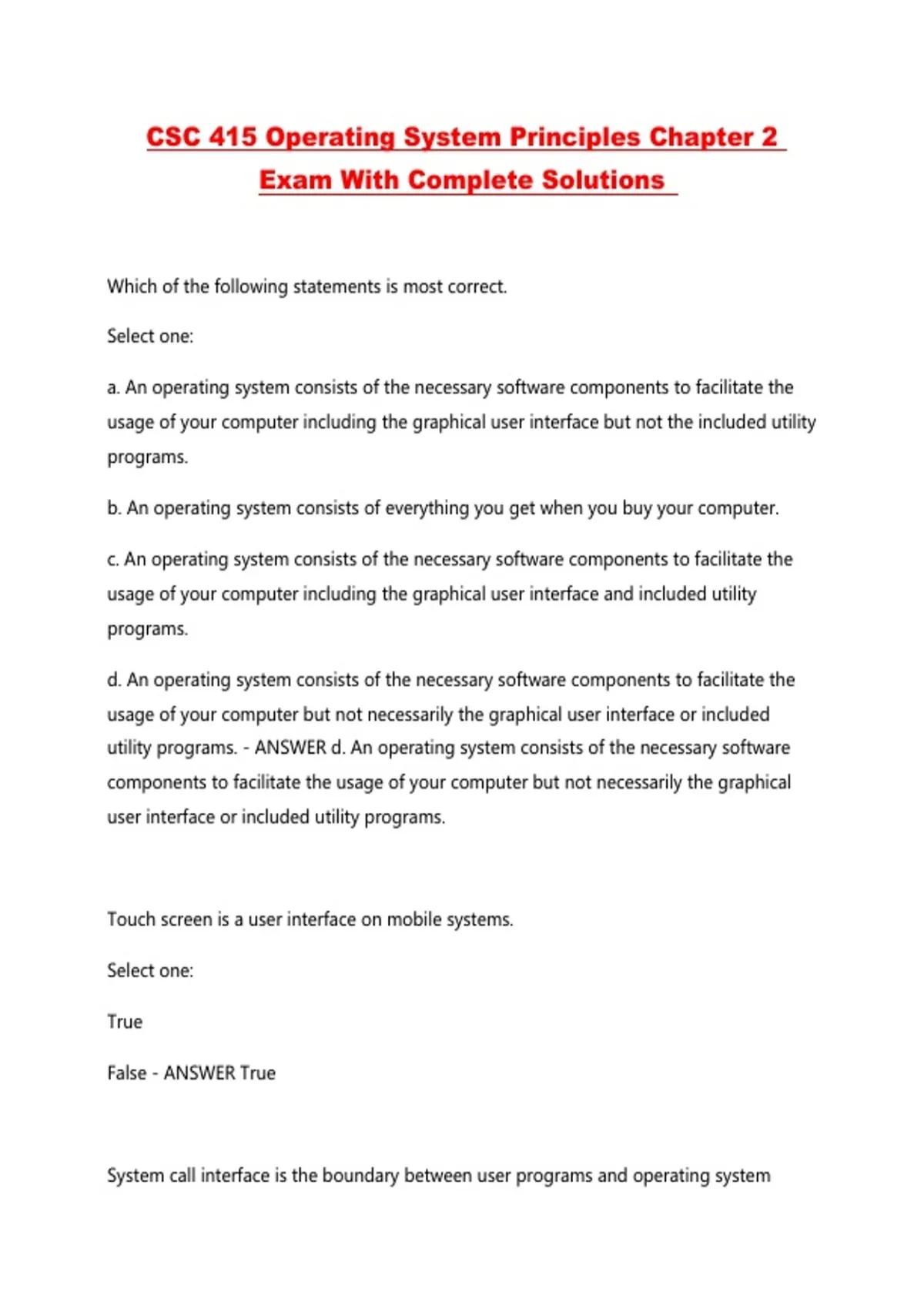CSC 415 Operating System Principles Chapter 2 Exam With Complete Solutions ...