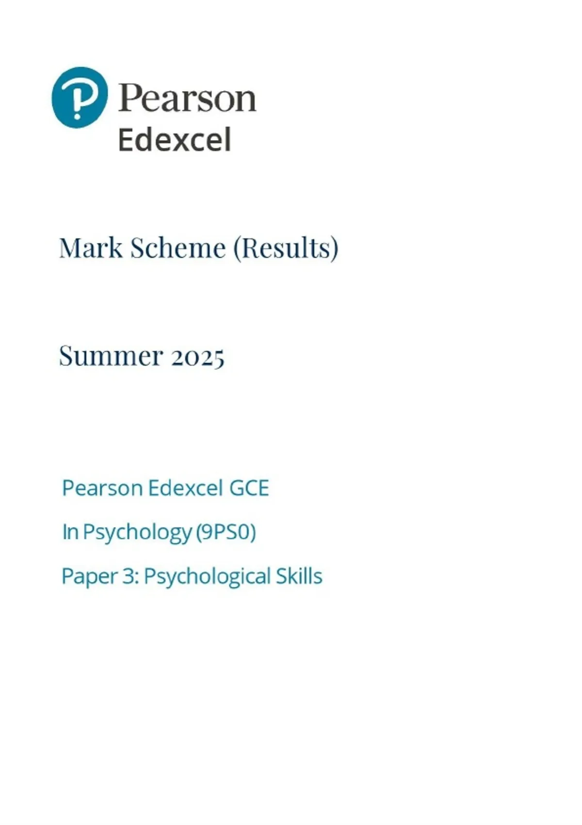 A-LEVEL EDEXCEL 2025 PSYCHOLOGY PAPER 3 9PS0/03 MARK SCHEME