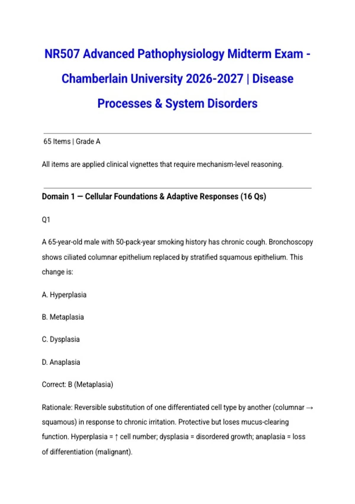 Correct: B (Metaplasia)