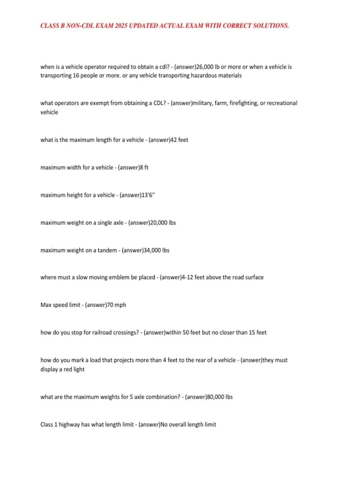 CLASS B NON-CDL EXAM 2025 UPDATED ACTUAL EXAM WITH CORRECT SOLUTIONS.