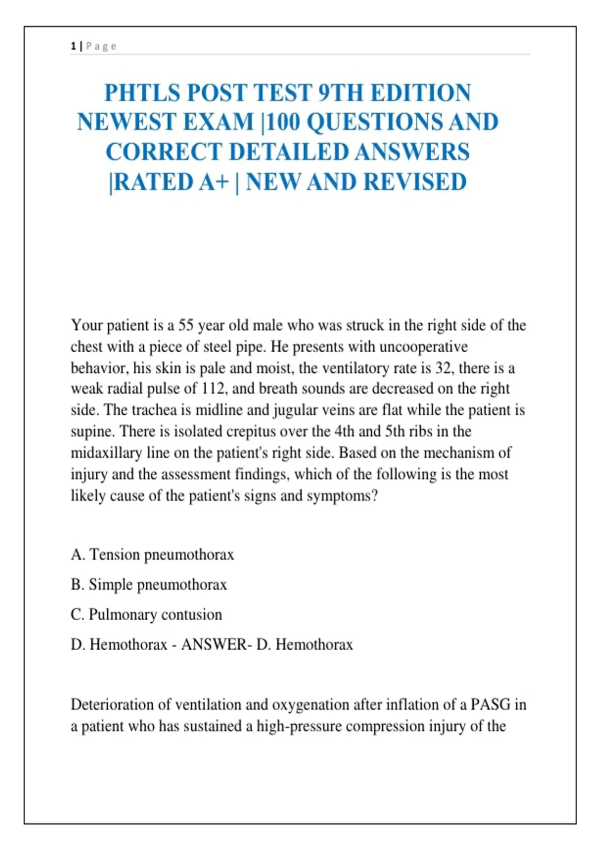 weak radial pulse of 112, and breath sounds are decreased on the right