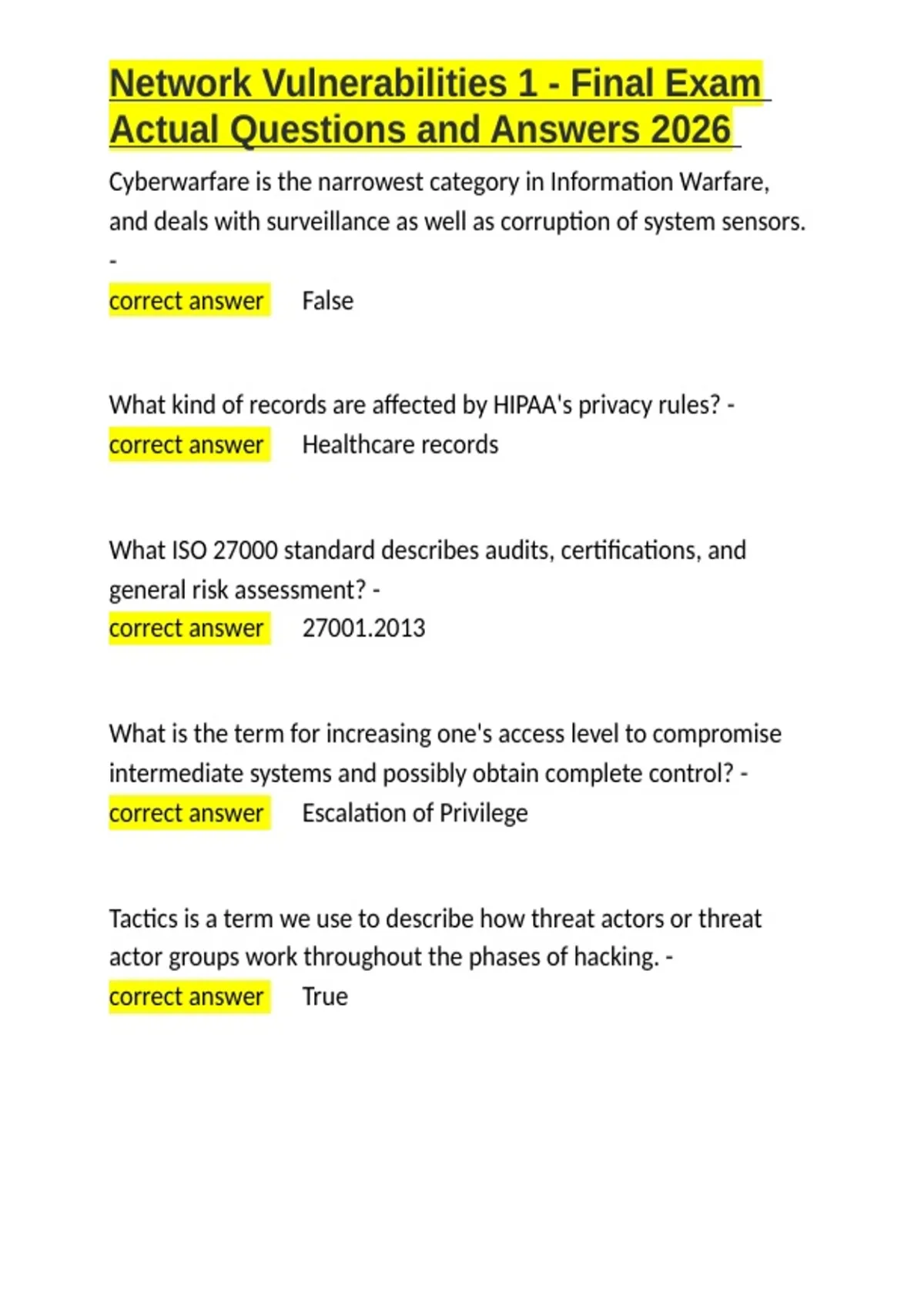 Network Vulnerabilities 1 - Final Exam Actual Questions and Answers 2026.docx