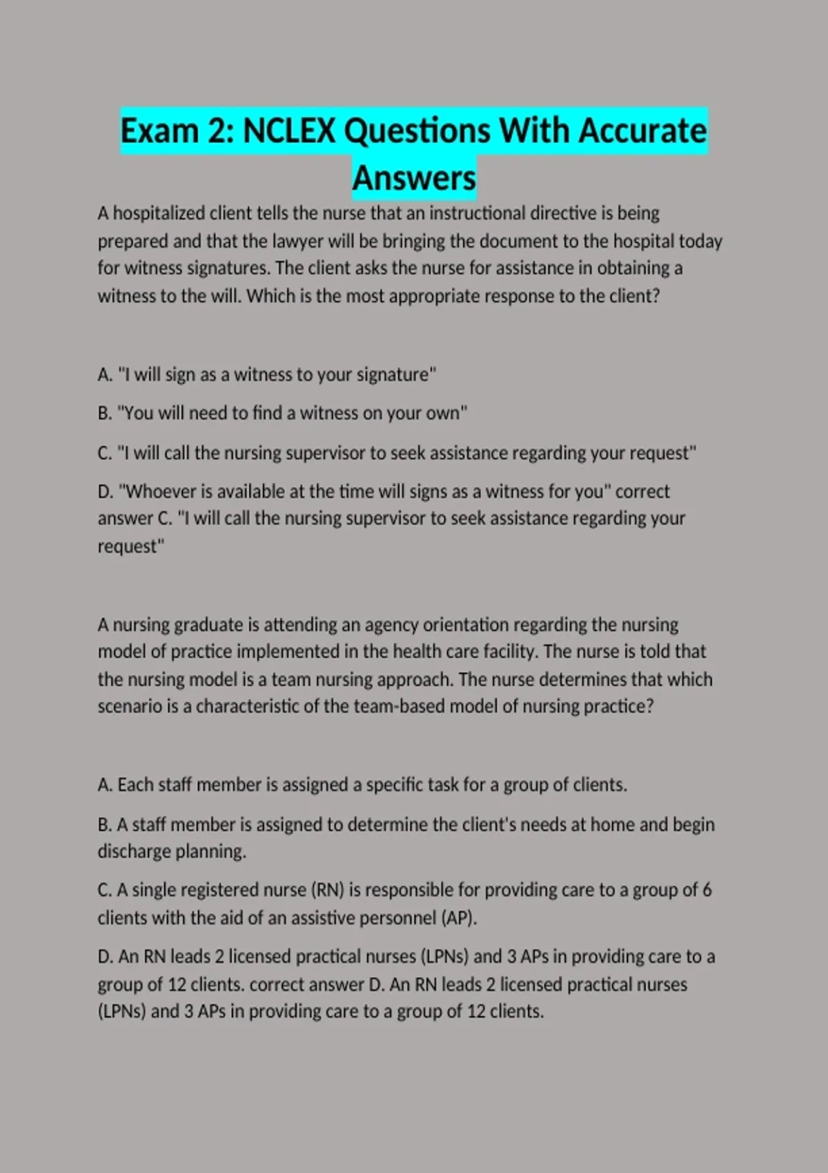 for witness signatures. The client asks the nurse for assistance in obtaining a