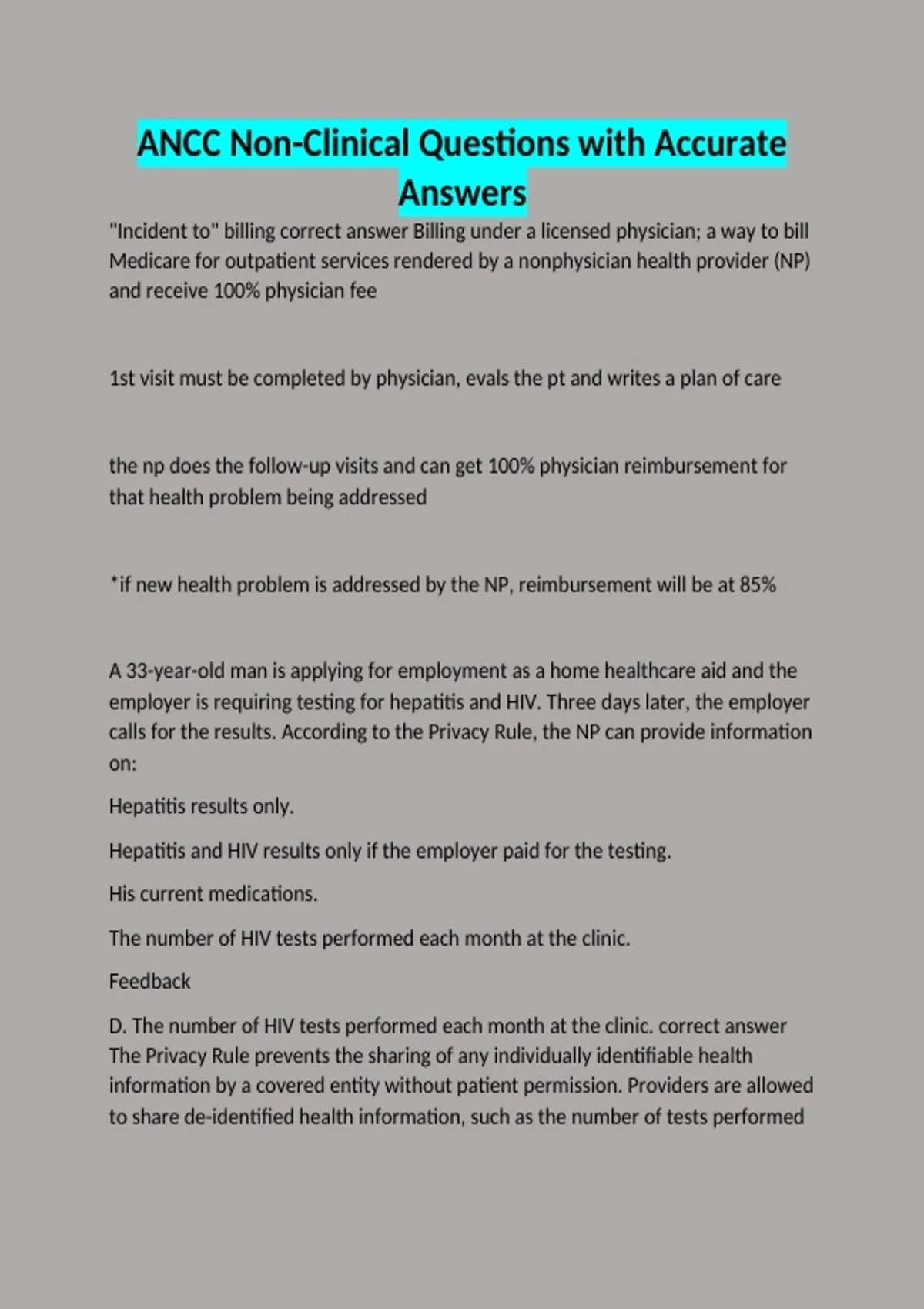 "Incident to" billing correct answer Billing under a licensed physician; a way to bill