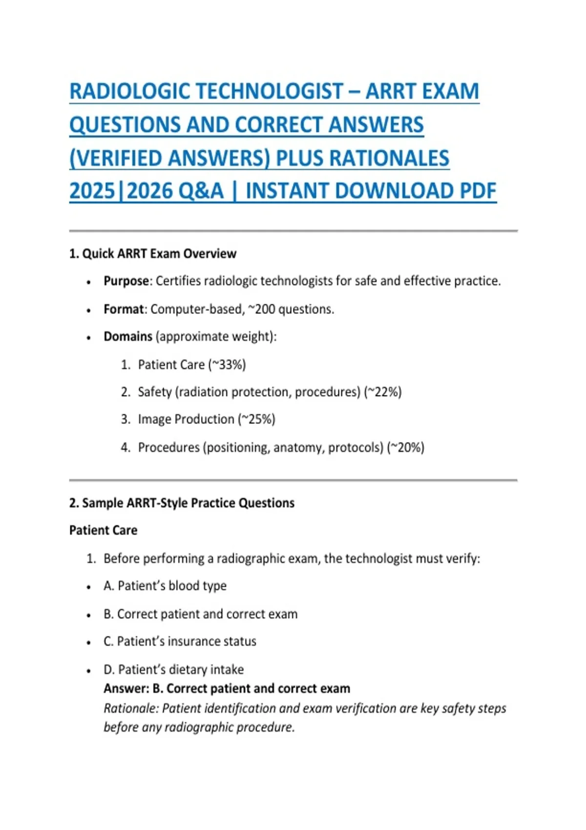 2026=Page 2 stuvia: RADIOLOGIC TECHNOLOGIST – ARRT EXAM.pdf 00/00/2026//2027 Study