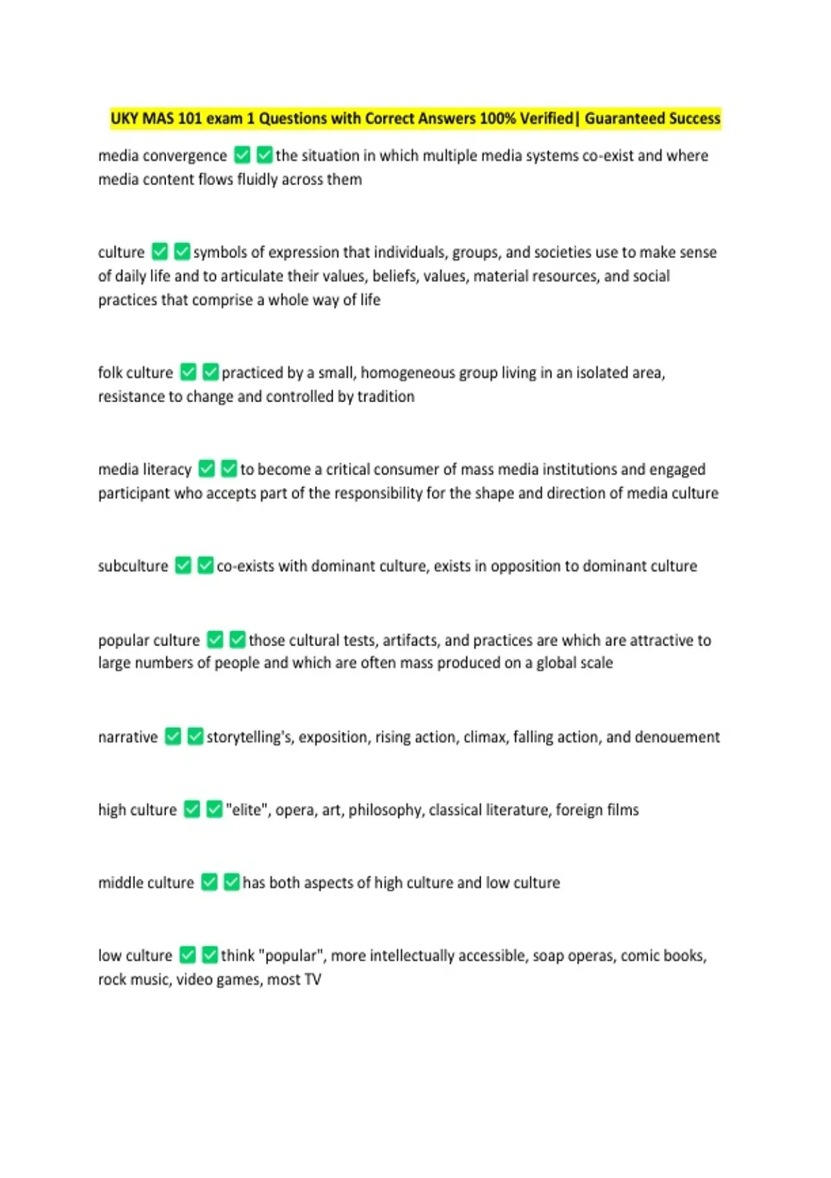 UKY MAS 101 exam 1 Questions with Correct Answers 100% Verified| Guaranteed Success
