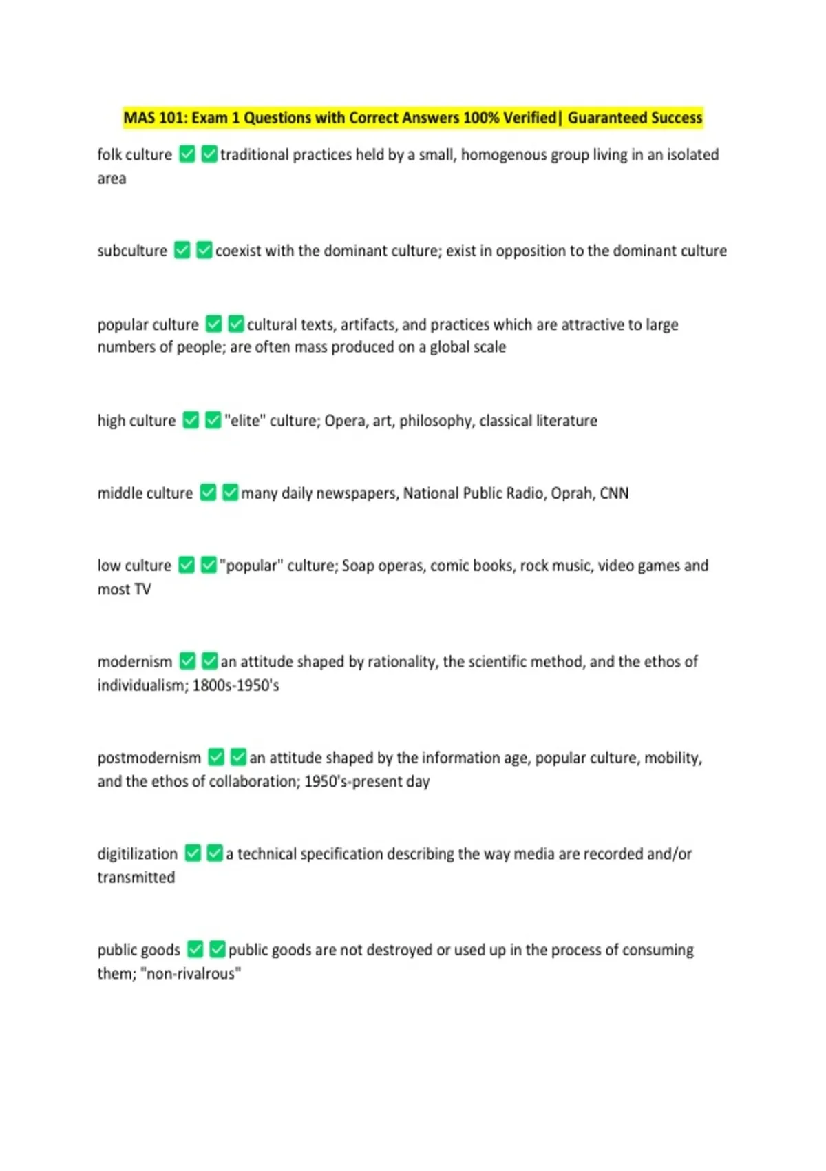 MAS 101: Exam 1 Questions with Correct Answers 100% Verified| Guaranteed Success
