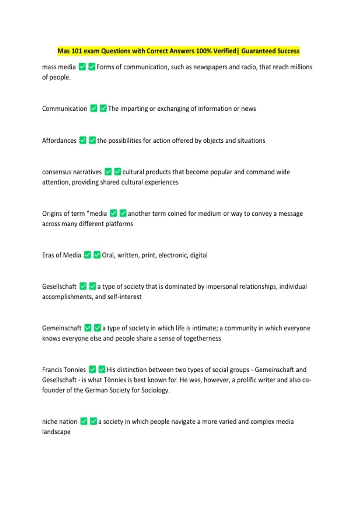Mas 101 exam Questions with Correct Answers 100% Verified| Guaranteed Success
