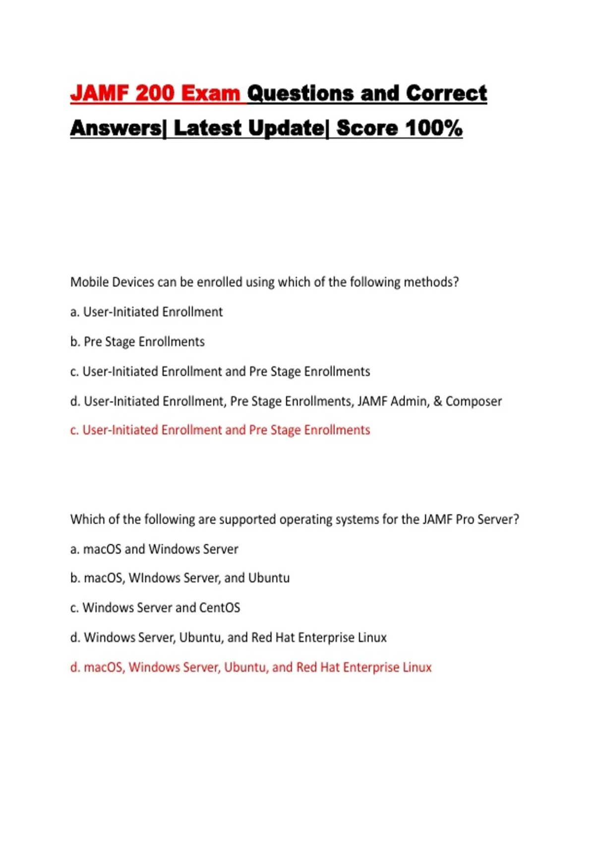 d. macOS, Windows Server, Ubuntu, and Red Hat Enterprise Linux