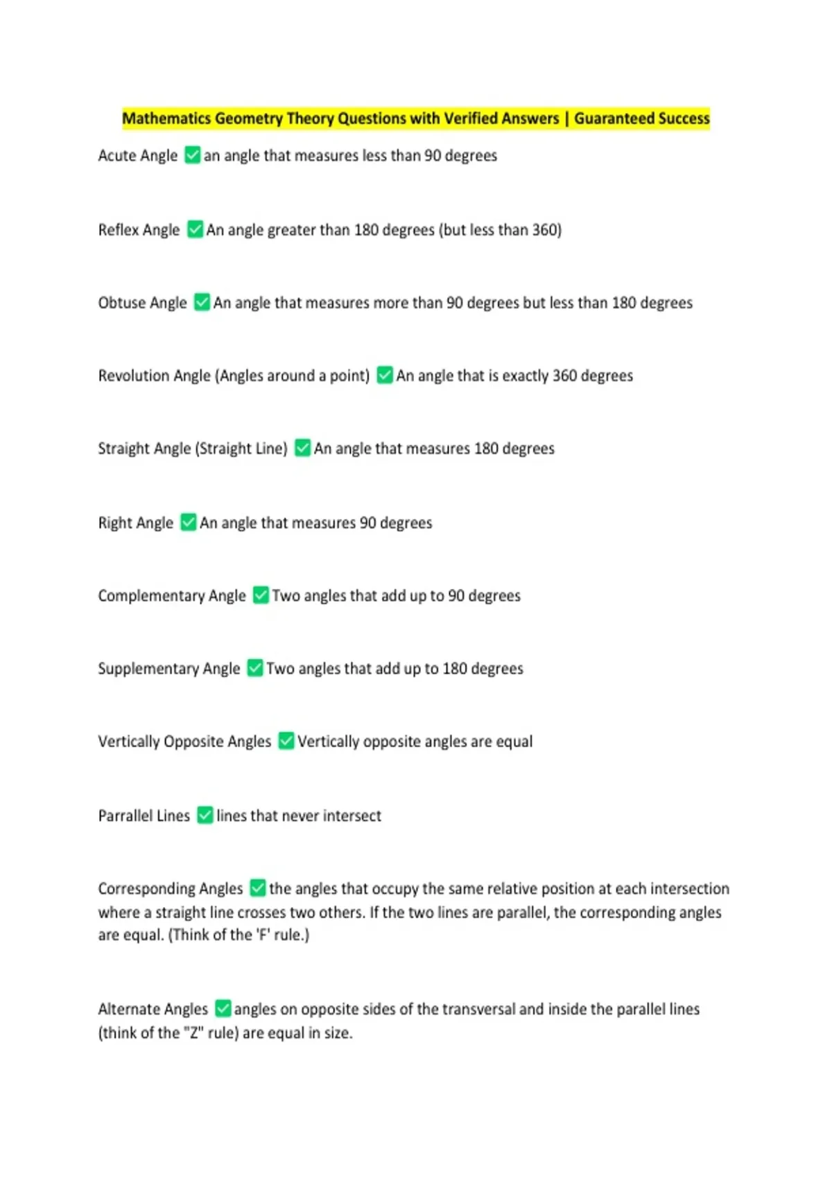 Mathematics Geometry Theory Questions with Verified Answers | Guaranteed Success