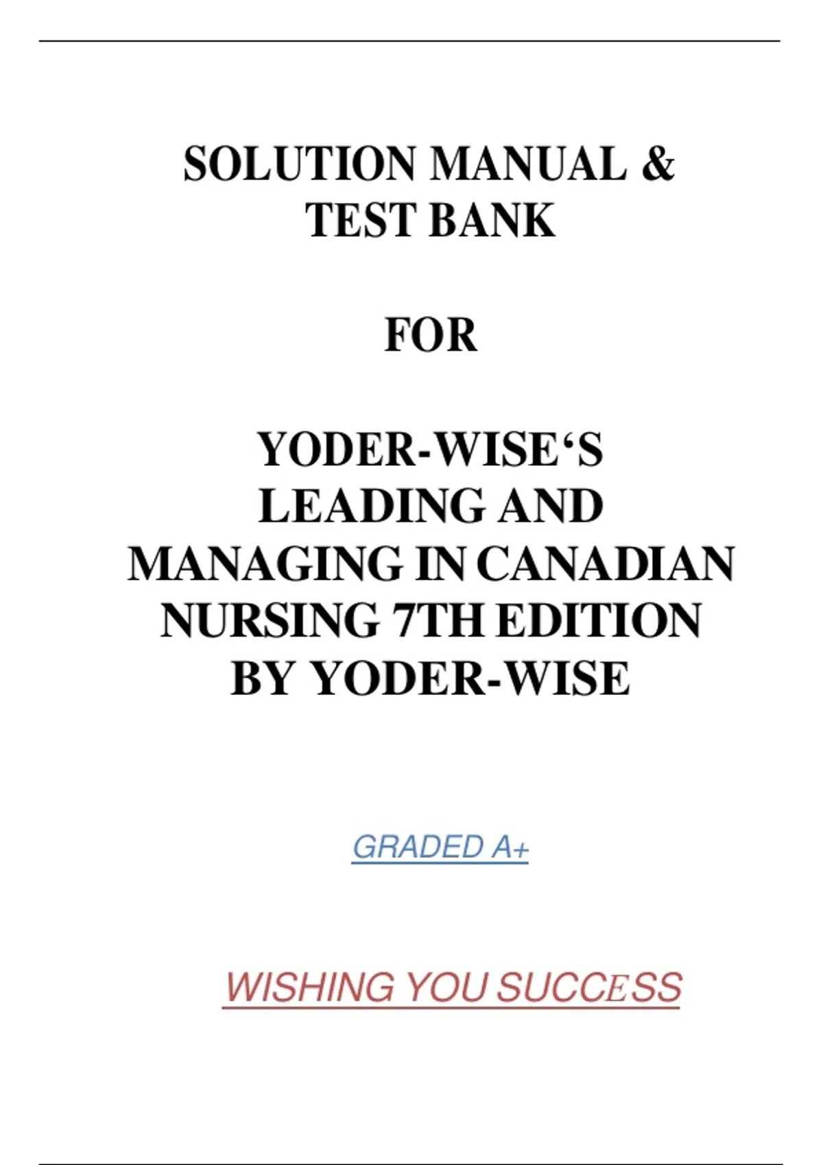 Test Bank for Yoder‑Wise’s Leading and Managing in Canadian Nursing 3rd Edition by Patricia S. Yoder‑Wise, Janice Waddell & Nancy A. Walton ISBN 9780323872843 Chapters(1 to 28)