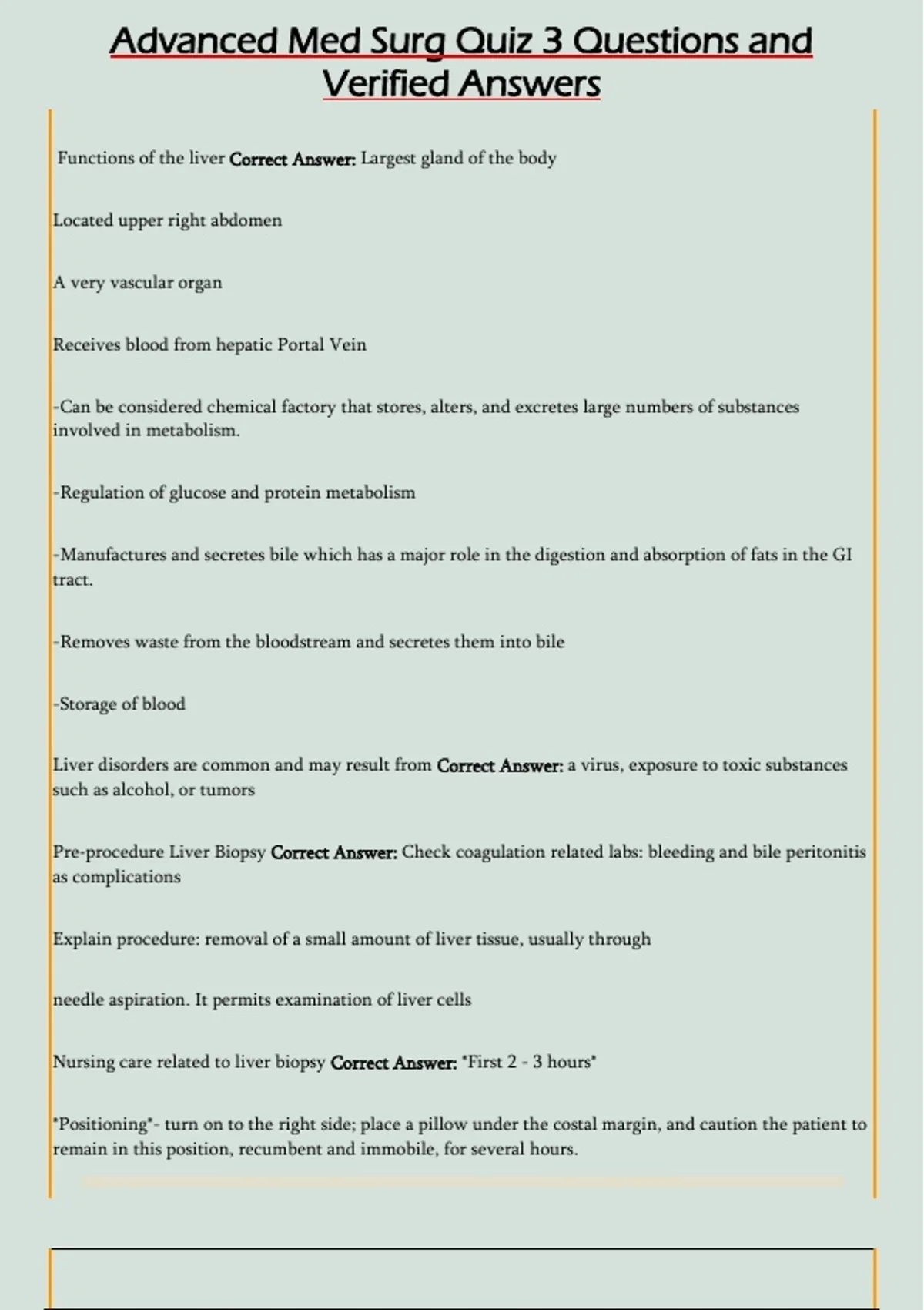 Advanced Med Surg Quiz 3 Questions and Verified Answers