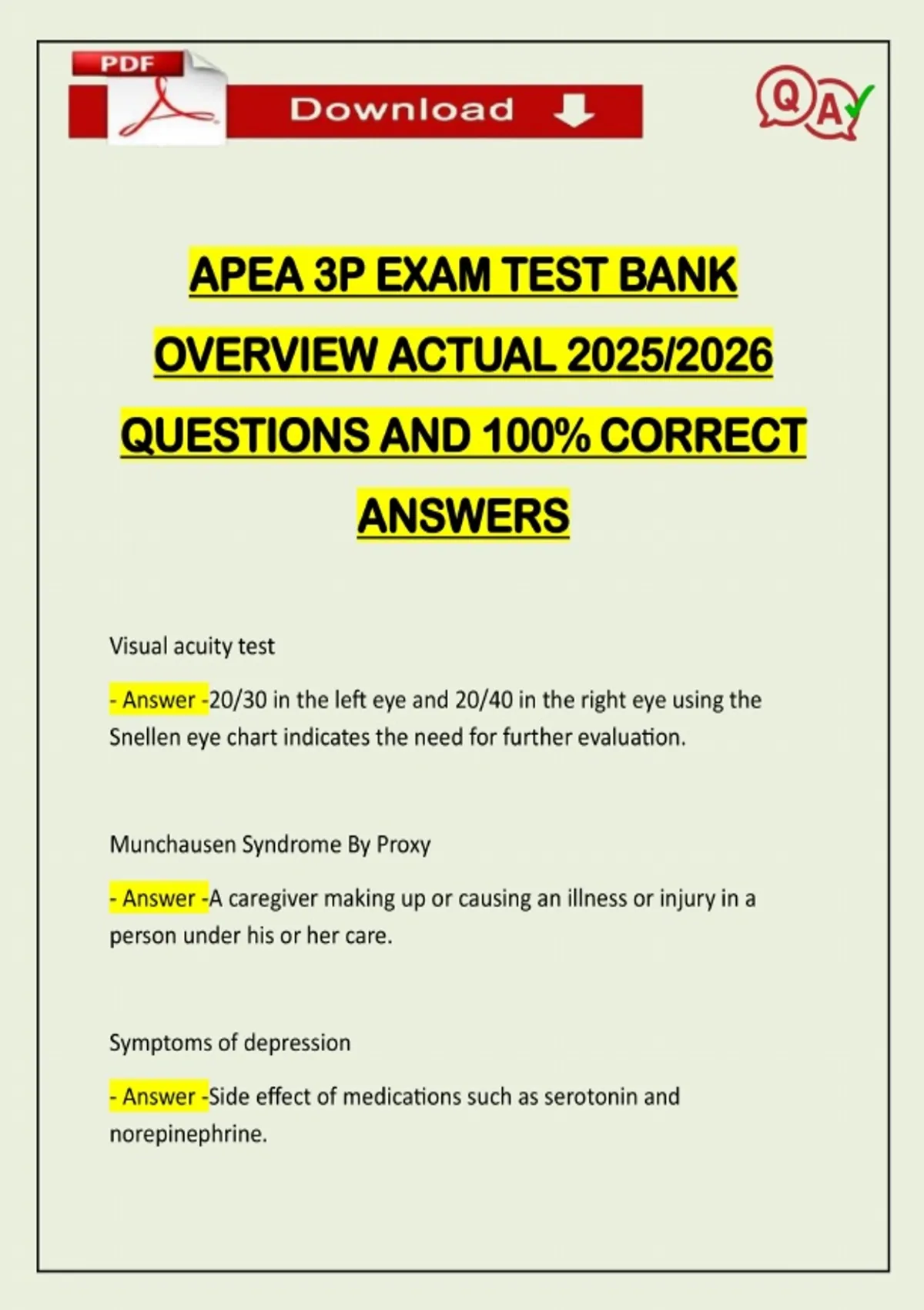 APEA 3P EXAM TEST BANK OVERVIEW ACTUAL 2026 QUESTIONS AND 100% CORRECT ANSWERS