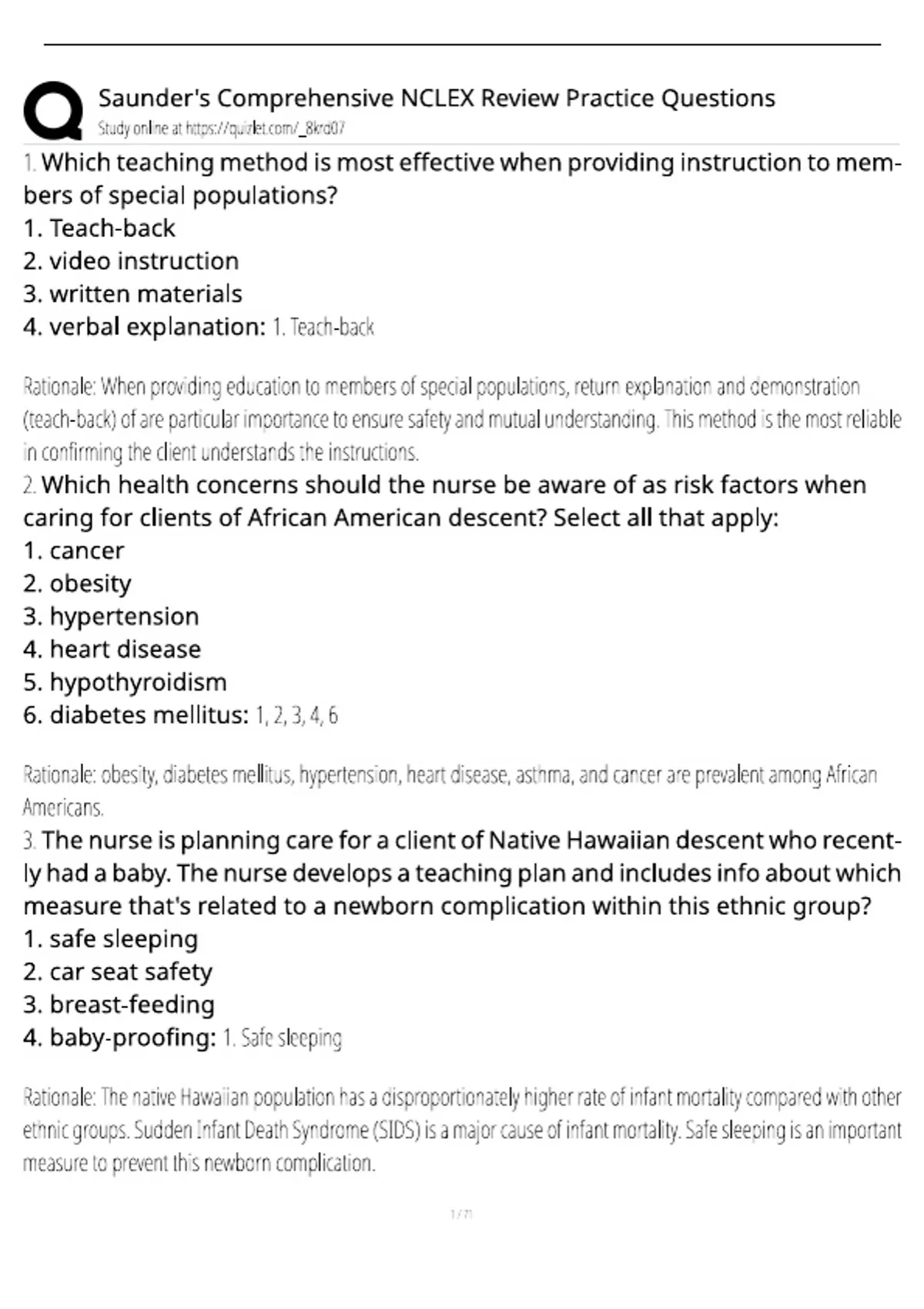 Boost your NCLEX exam readiness with Saunders Comprehensive NCLEX Review Practice Questions 2026! This resource contains fully verified questions and correct answers, designed to ensure 100% pass guarantee and A+ results for nursing students preparing for NCLEX-RN or NCLEX-PN. Topics include fundamentals of nursing, medical-surgical nursing, maternal-newborn care, pediatrics, pharmacology, mental health, and critical thinking for clinical scenarios.Structured in multiple-choice and scenario-based style to mimic the real NCLEX exam, this guide allows for efficient self-assessment and targeted study. Ideal for nursing students, recent graduates, and international nurses seeking to excel on their NCLEX exams. Updated for 2026, this practice guide delivers accurate, exam-focused content to help you pass confidently on the first attempt.