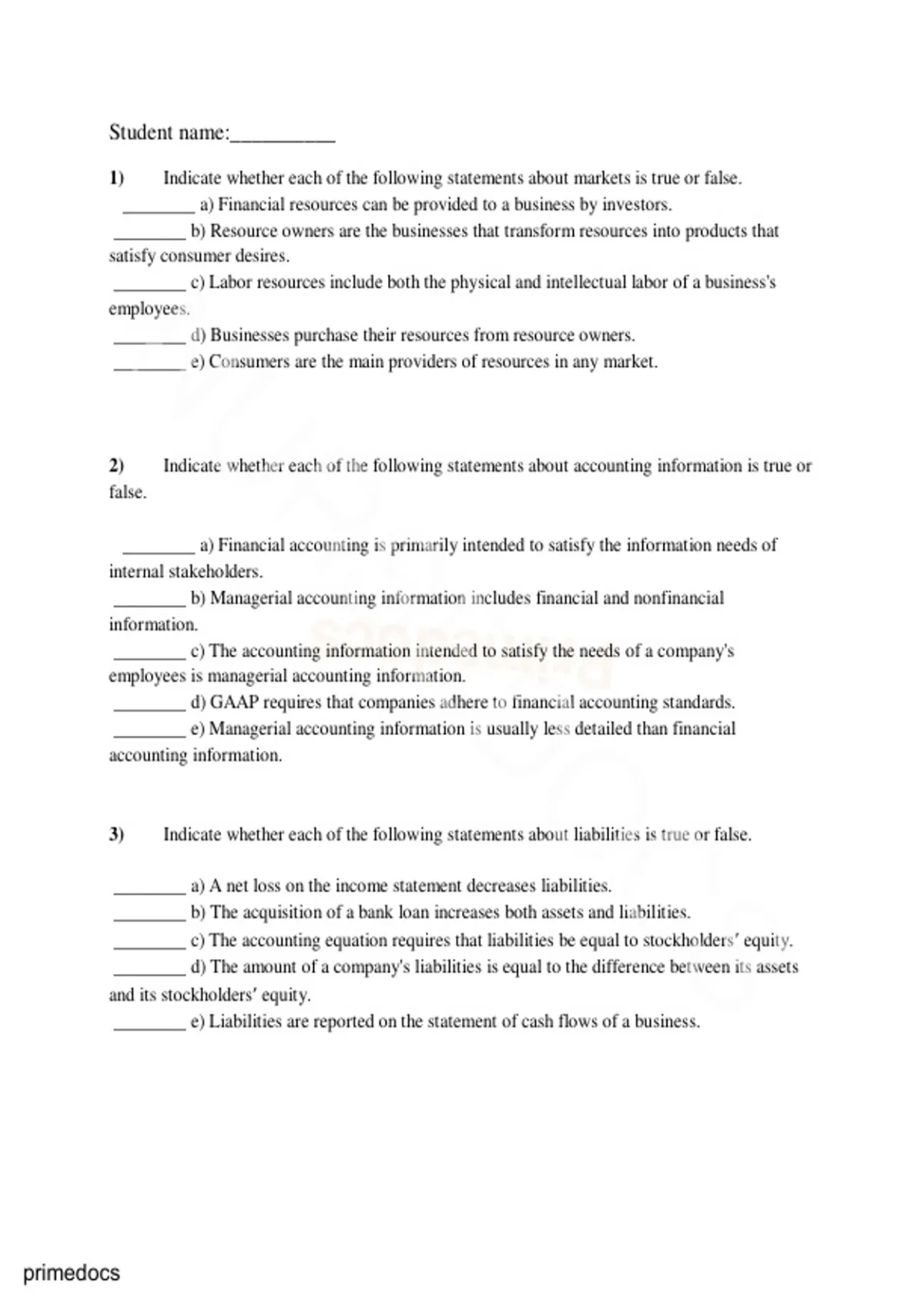 3) Indicate whether each of the following statements about liabilities is true or false.