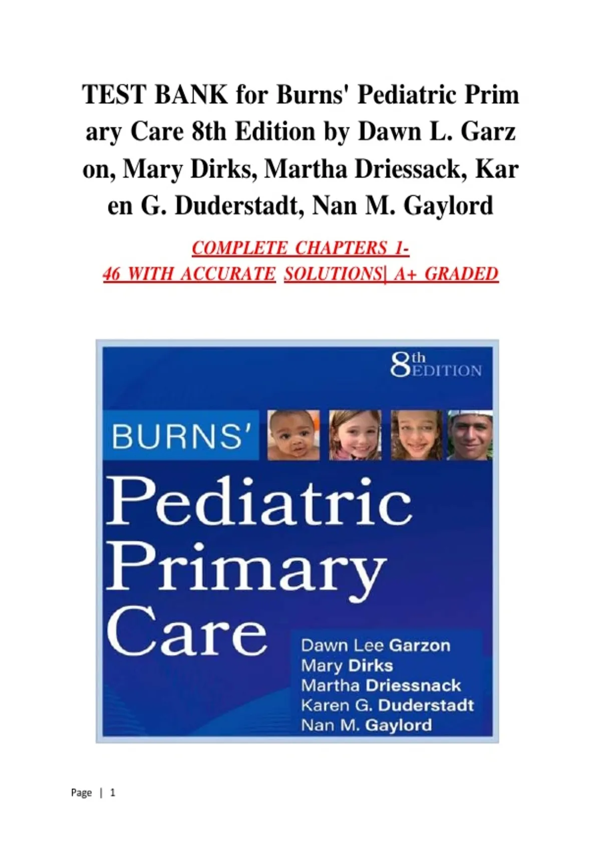 Test Bank for Burns’ Pediatric Primary Care | 8th Edition