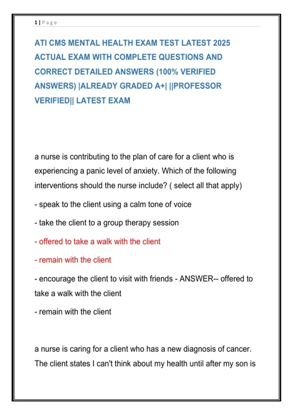 ATI CMS MENTAL HEALTH EXAM TEST LATEST 2025