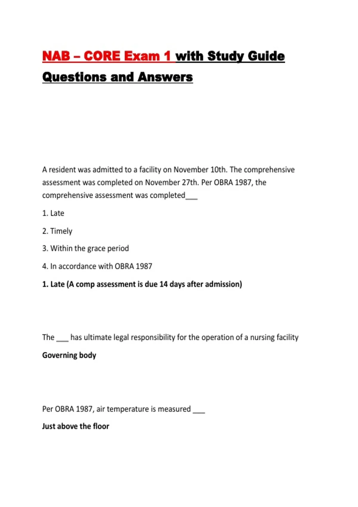 NAB – CORE Exam 1 with Study Guide