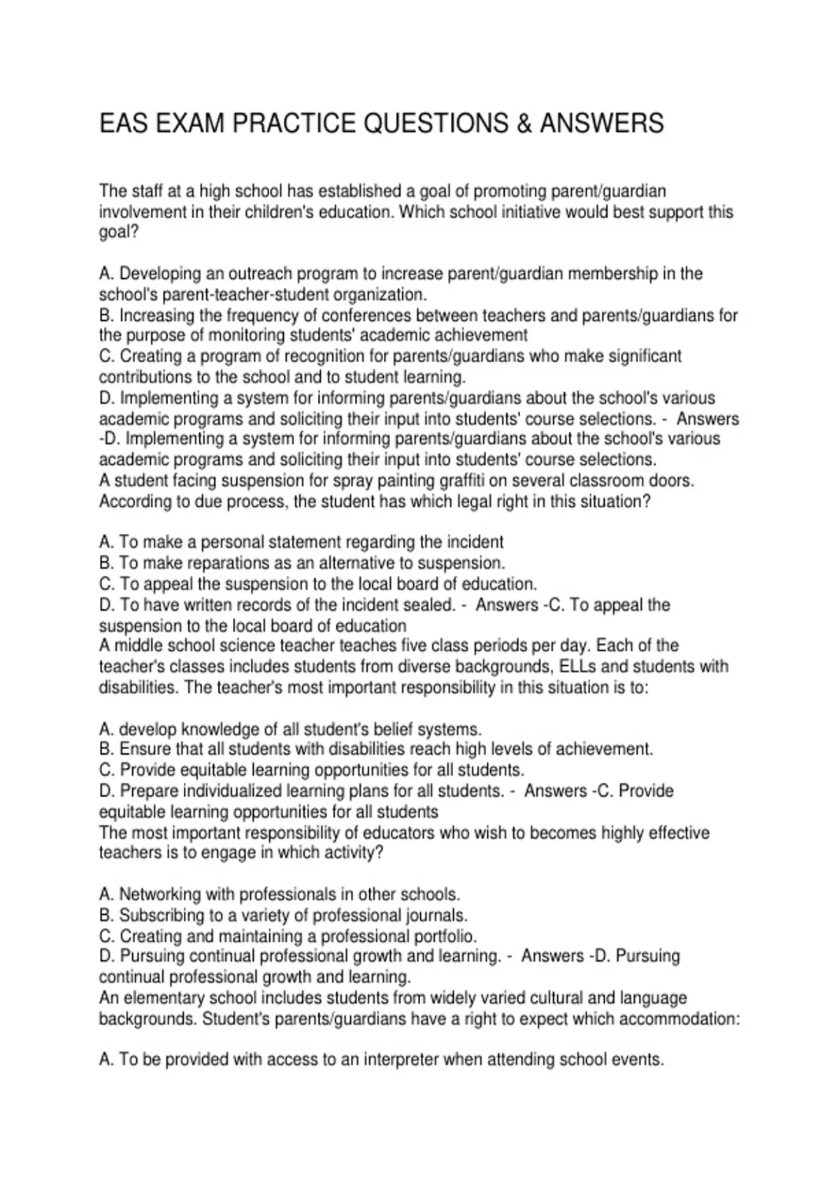 EAS EXAM PRACTICE QUESTIONS & ANSWERS