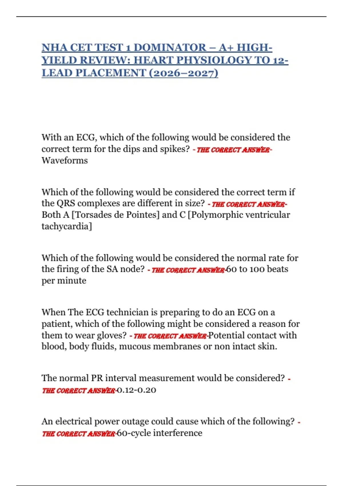 2026–2027 A+ EKG Blueprint: Master Heart Physiology, Rhythms & 12-Lead Placement for CET Test 1
