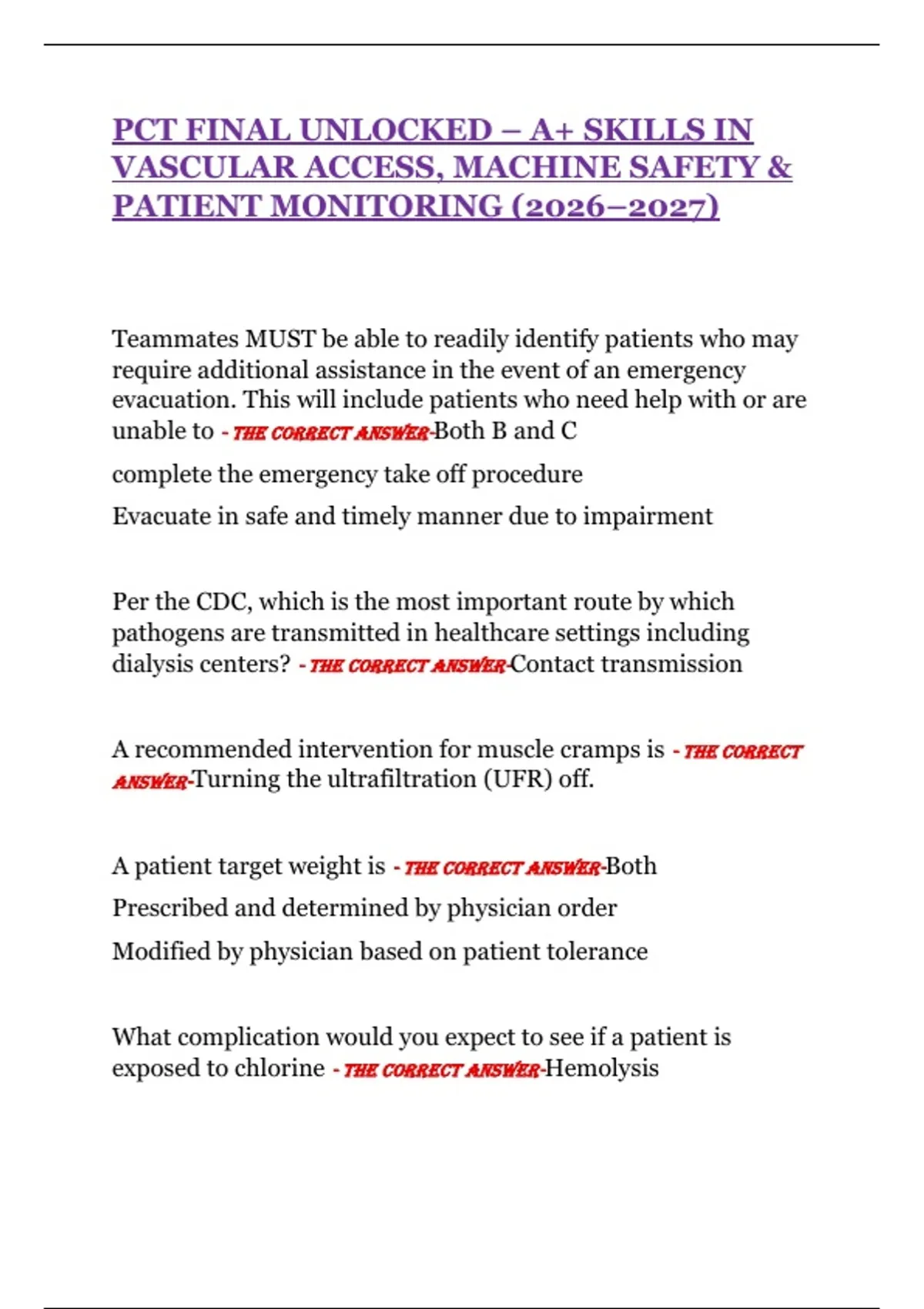 PCT FINL UNLOCKED – A+ SKILLS IN VASCULAR ACCESS,