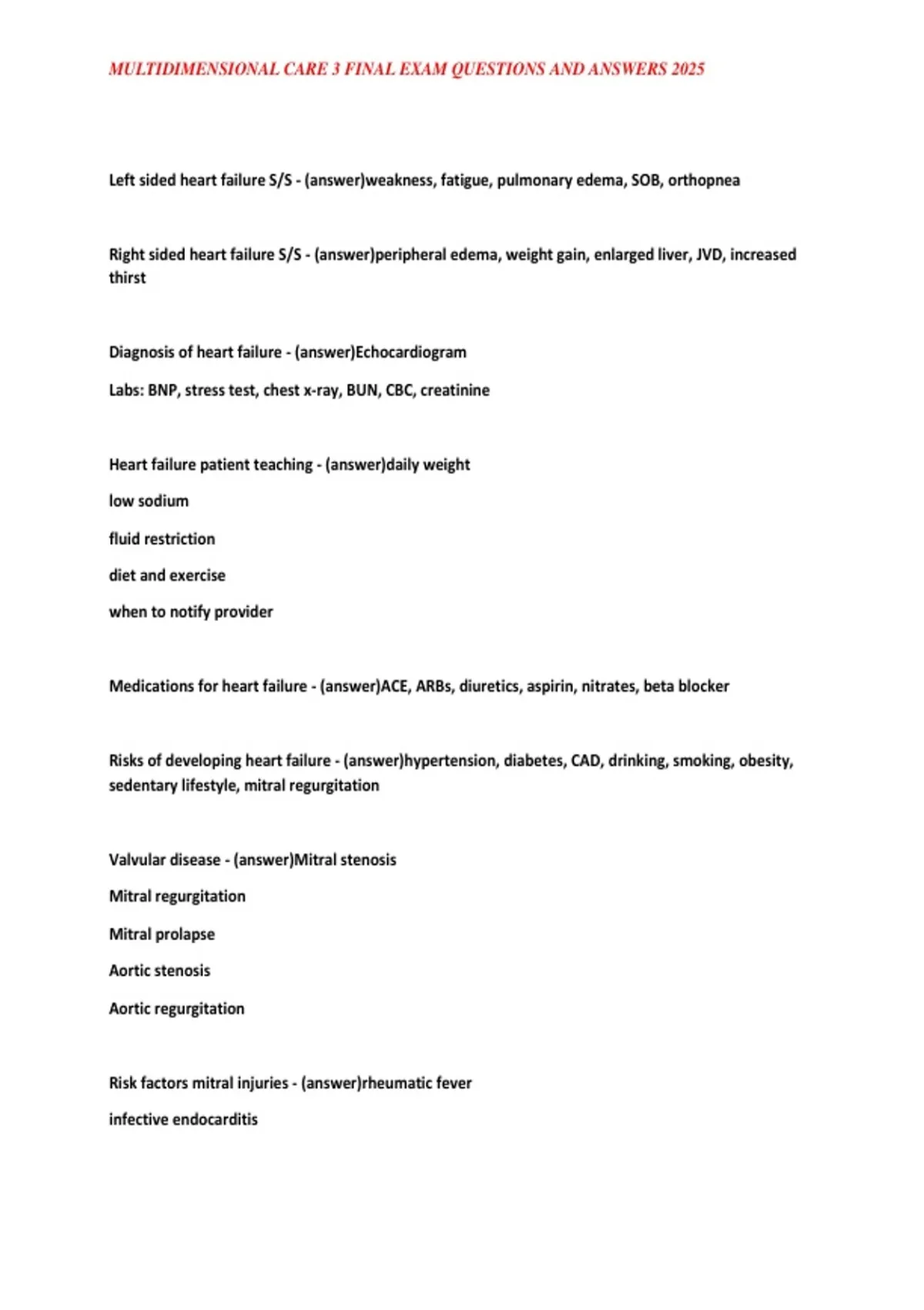 , MULTIDIMENSIONAL CARE 3 FINAL EXAM QUESTIONS AND ANSWERS 2025