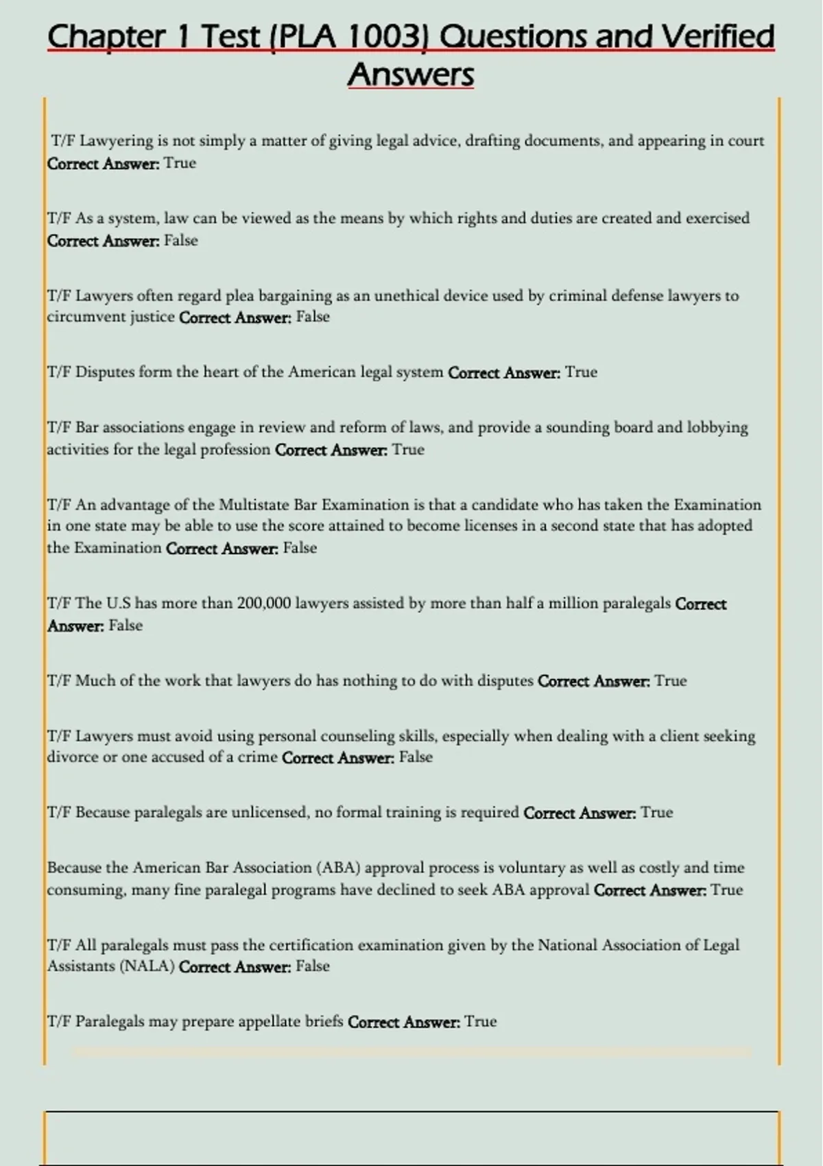Chapter 1 Test (PLA 1003) Questions and Verified Answers