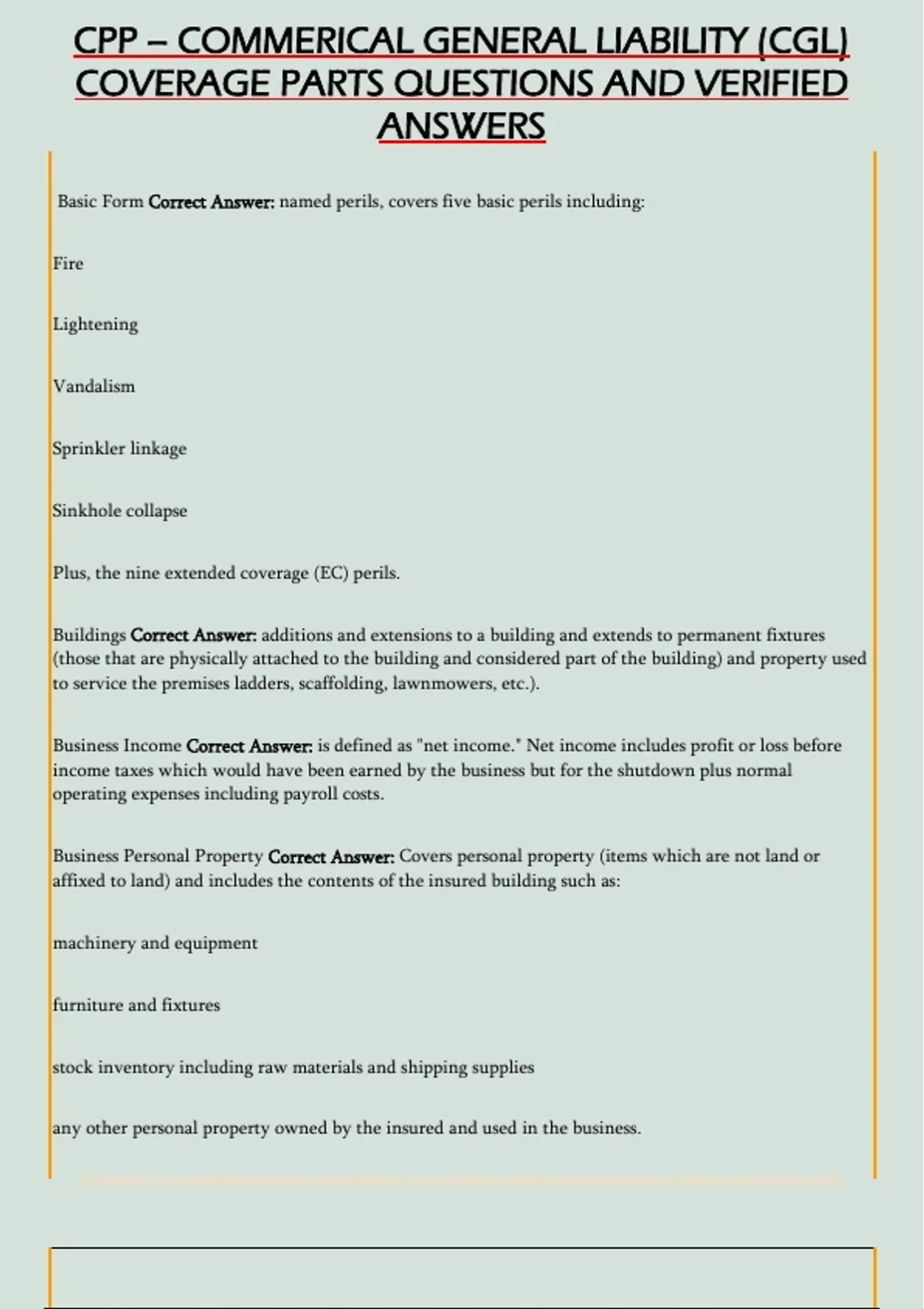 COVERAGE PARTS QUESTIONS AND VERIFIED