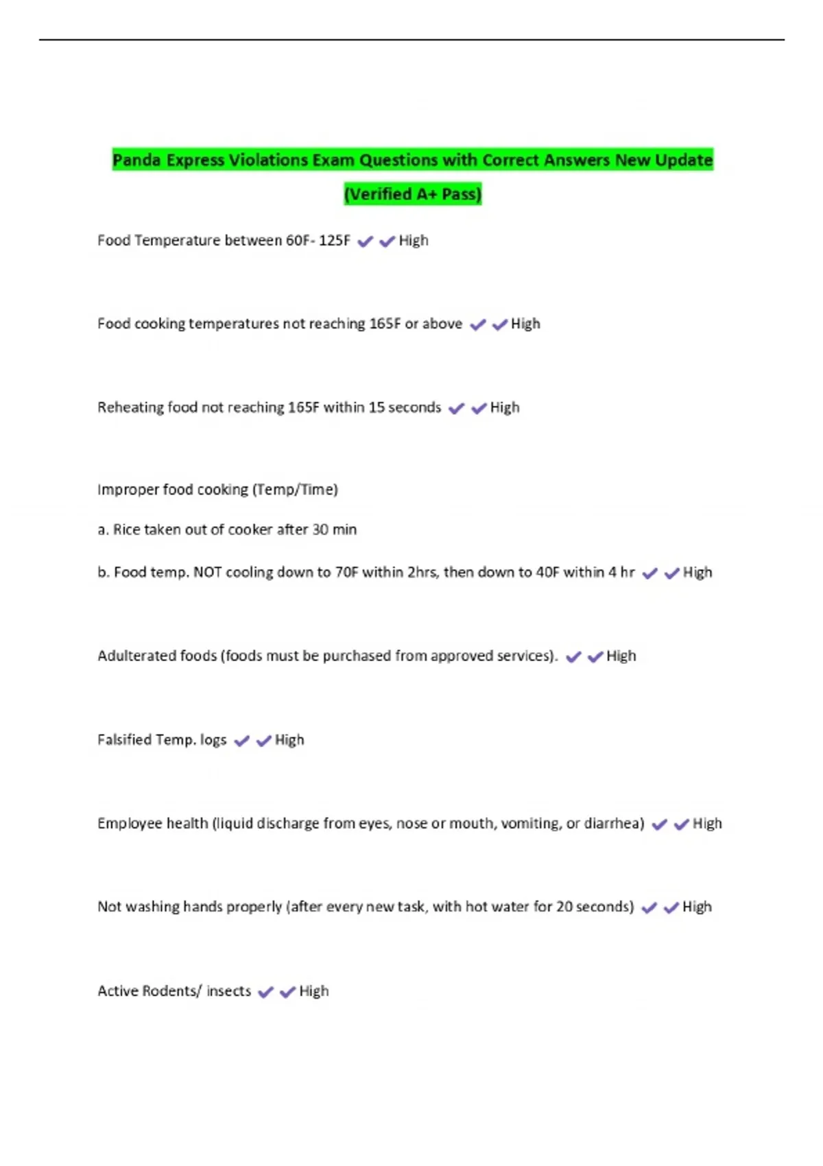 Panda Express Violations Exam Questions with Correct Answers New Update (Verified A+ Pass)
