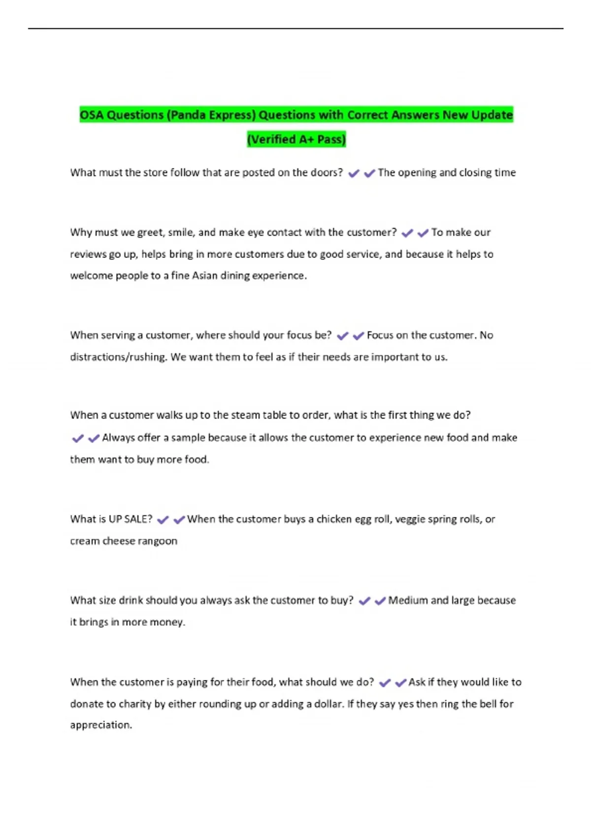 OSA Questions (Panda Express) Questions with Correct Answers New Update (Verified A+ Pass)