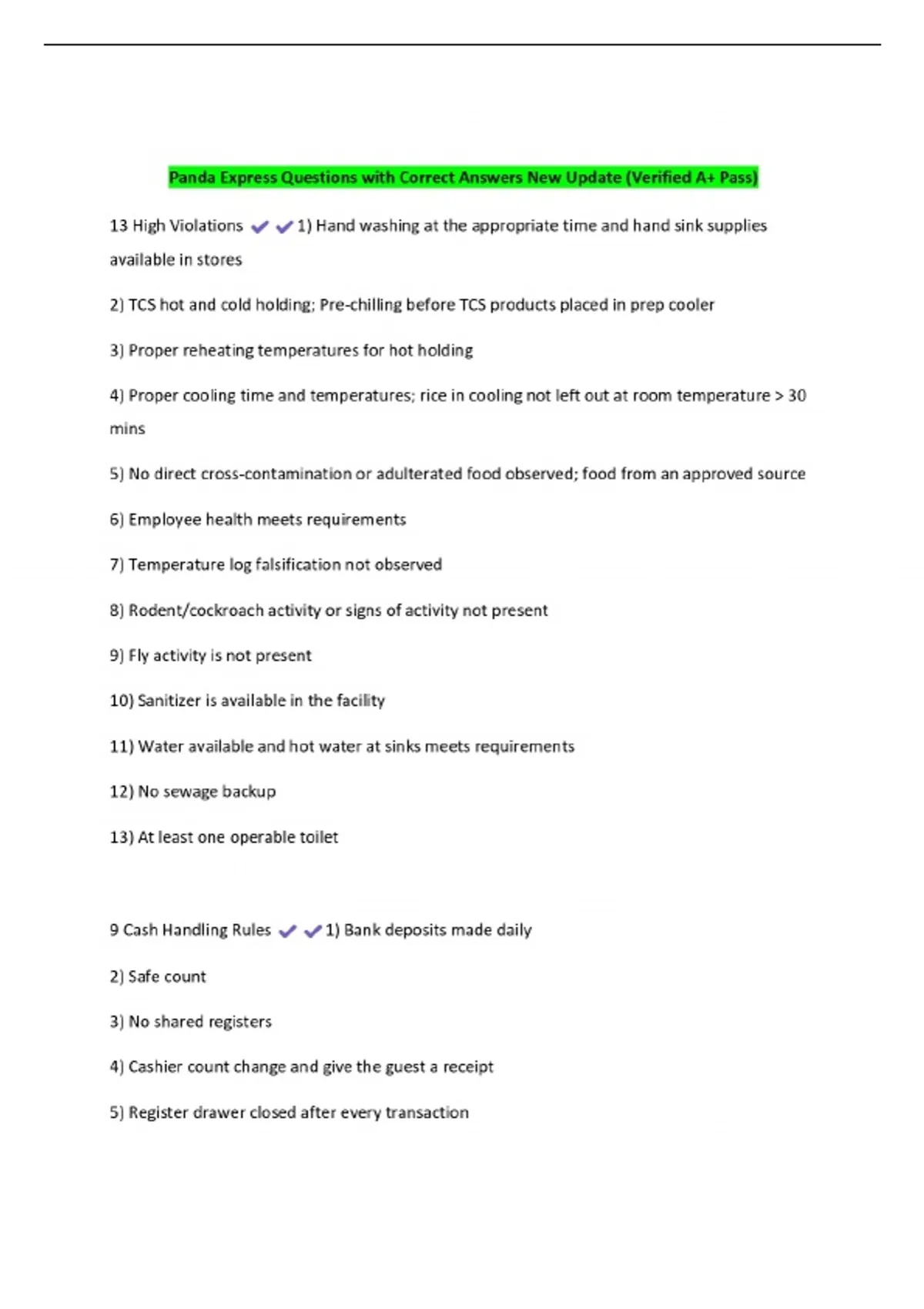 Panda Express Questions with Correct Answers New Update (V