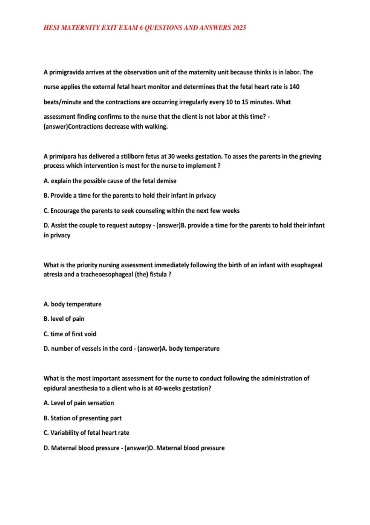 HESI MATERNITY EXIT EXAM 6 QUESTIONS AND ANSWERS 2025