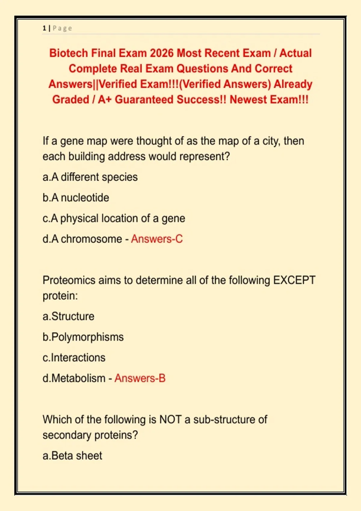 Biotech Final Exam 2026 Most Recent Exam / Actual Complete Real Exam Questions And Correct Answers||Verified Exam!!!(Verified Answers) Already Graded / A+ Guaranteed Success!! Newest Exam!!!