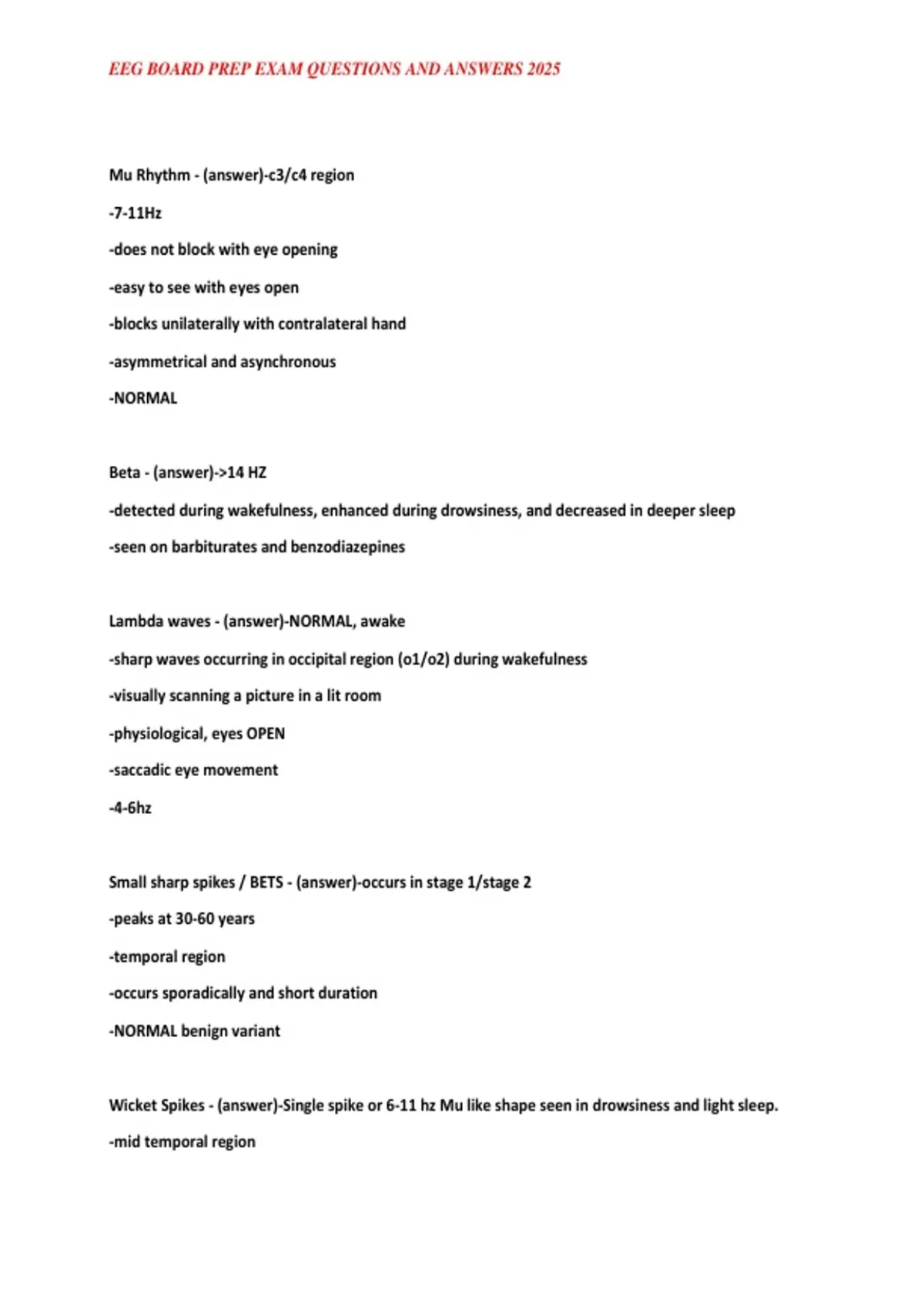 ,EEG BOARD PREP EXAM QUESTIONS AND ANSWERS 2025