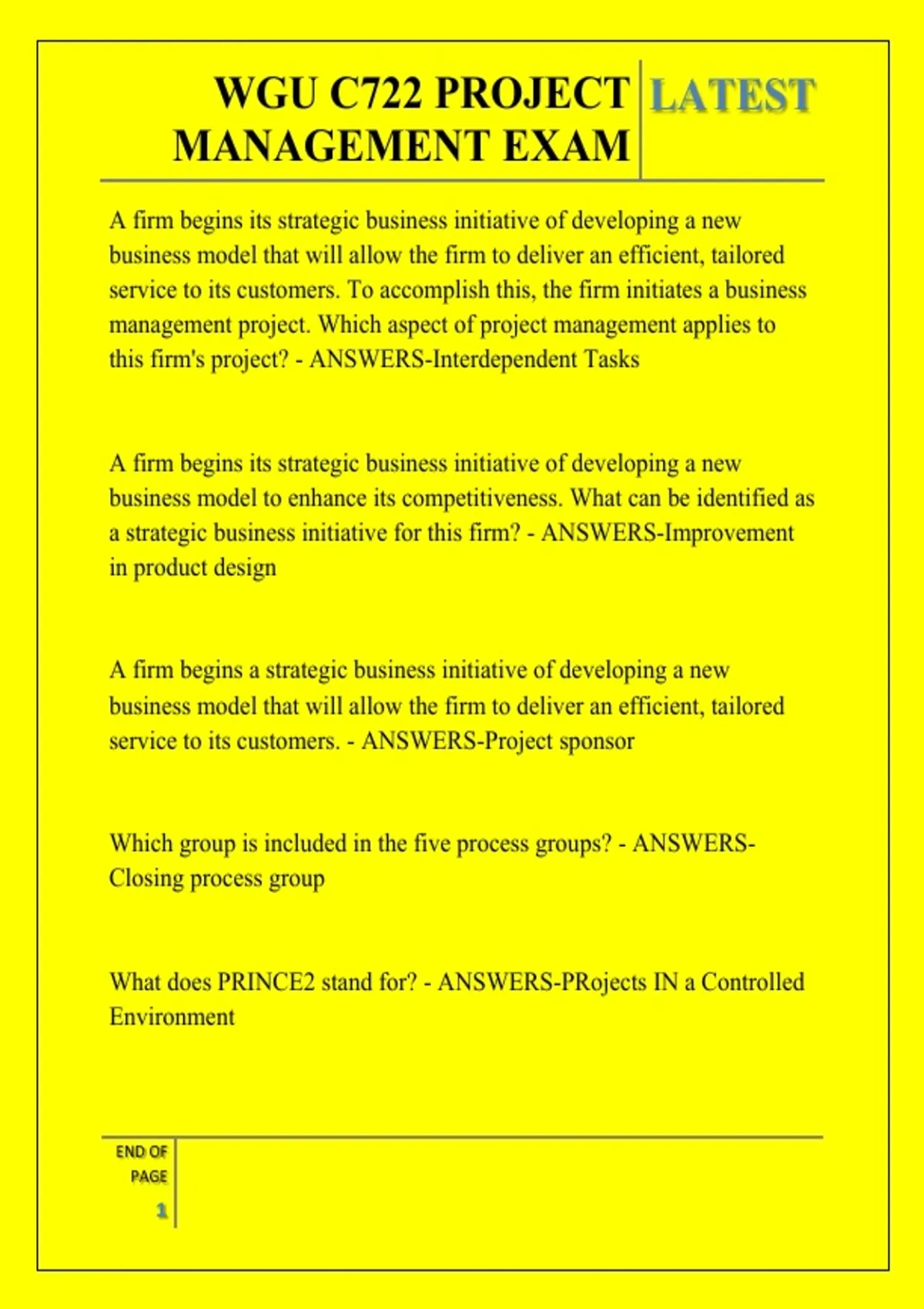 WGU C722 PROJECT MANAGEMENT EXAM QUESTIONS AND ANSWERS 2026