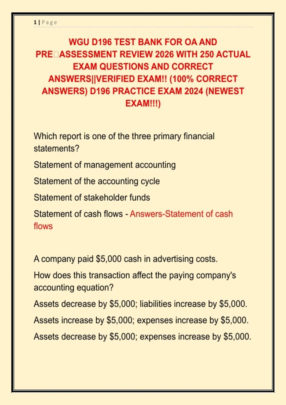WGU D196 TEST BANK FOR OA AND PRE ASSESSMENT REVIEW 2026 WITH 250 ACTUAL EXAM QUESTIONS AND CORRECT ANSWERS||VERIFIED EXAM!! (100% CORRECT ANSWERS) D196 PRACTICE EXAM 2024 (NEWEST EXAM!!!)