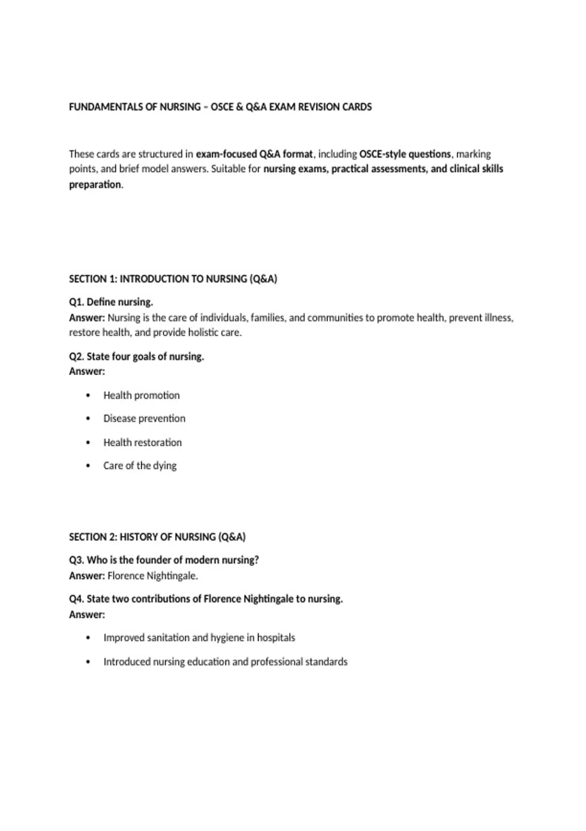 SECTION 2: HISTORY OF NURSING (Q&A)