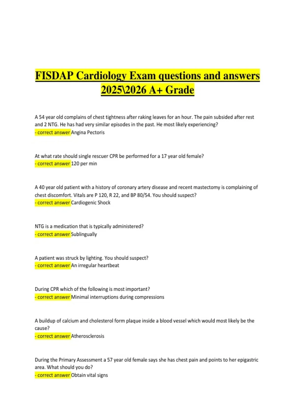 - correct answer Angina Pectoris