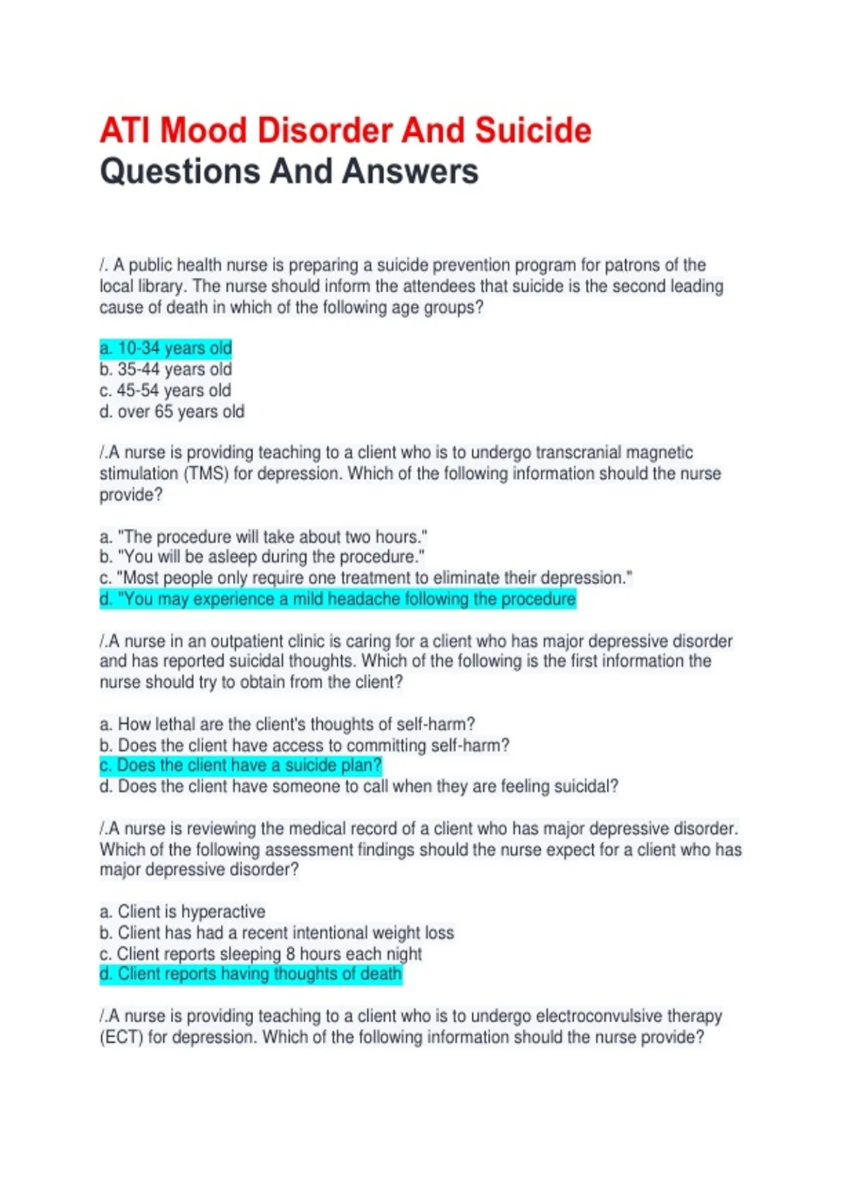 /.A nurse in an outpatient clinic is caring for a client who has major depressive disorder