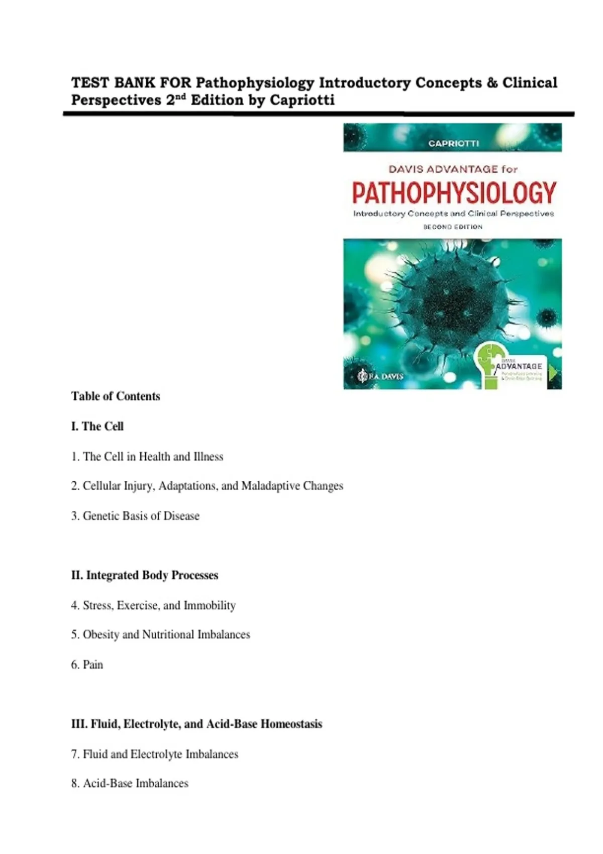 TEST BANK FOR Pathophysiology Introductory Concepts & Clinical