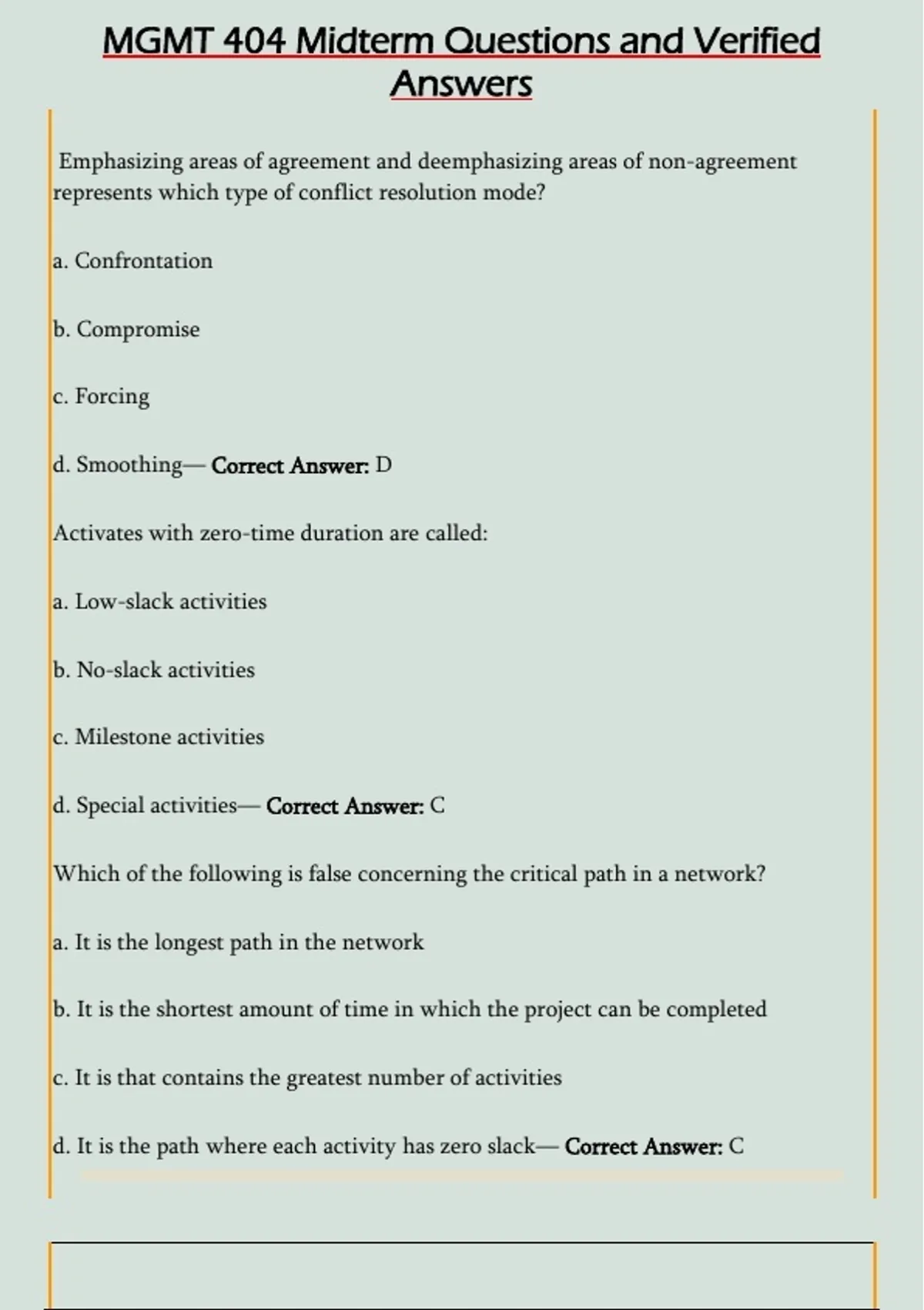 MGMT 404 Midterm Questions and Verified