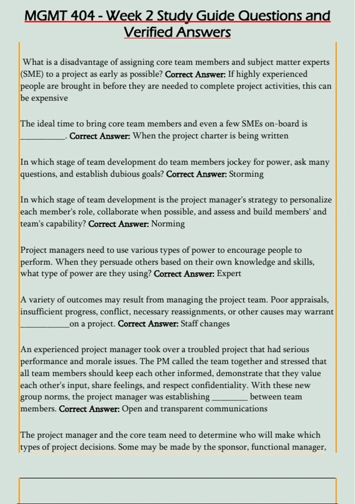 MGMT 404 - Week 2 Study Guide Questions and