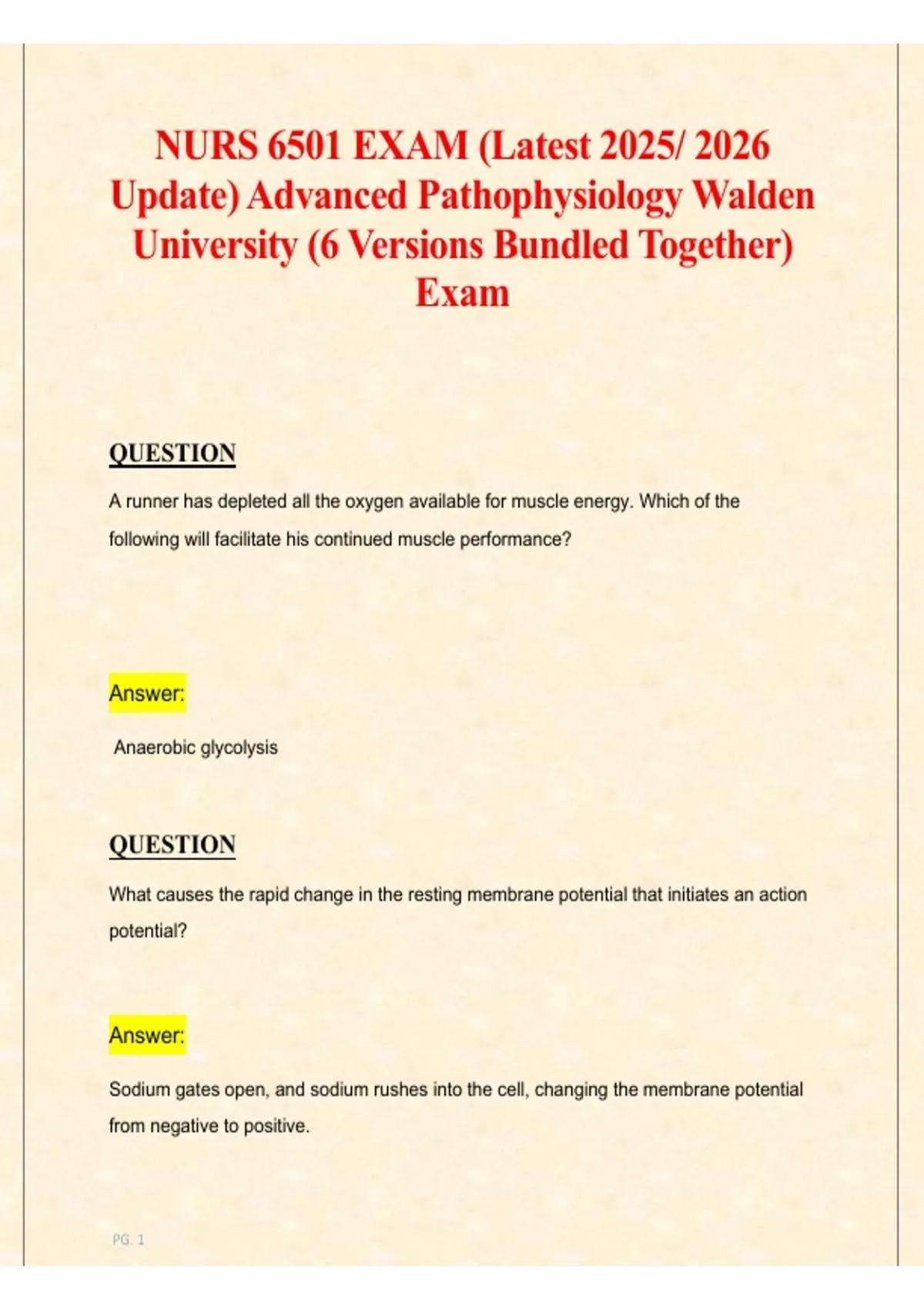 , NURS 6501 EXAM (Latest 2025- 2026 Update) Advanced Pathophysiology
