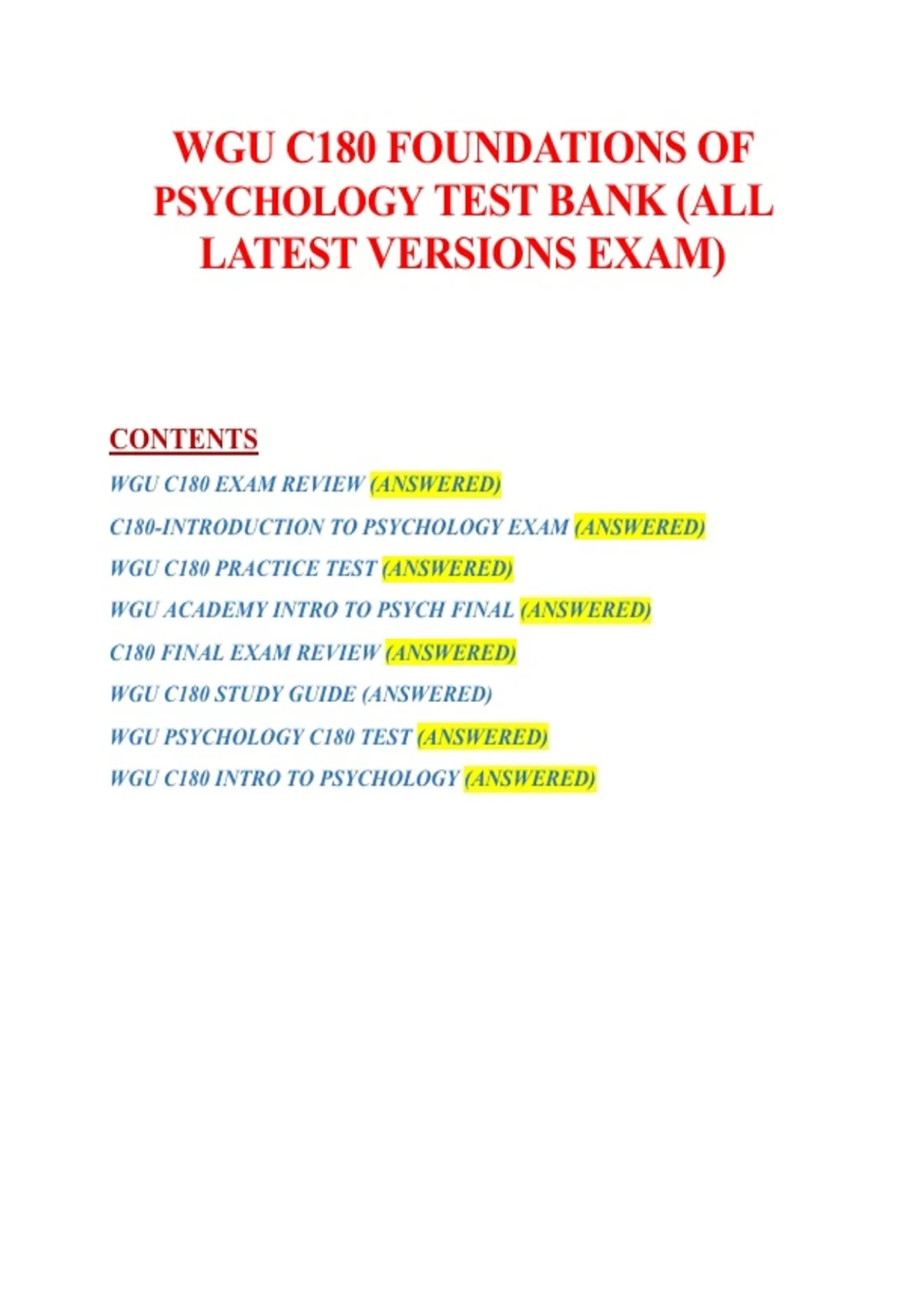 WGU PSYCHOLOGY C180 TEST (ANSWERED)