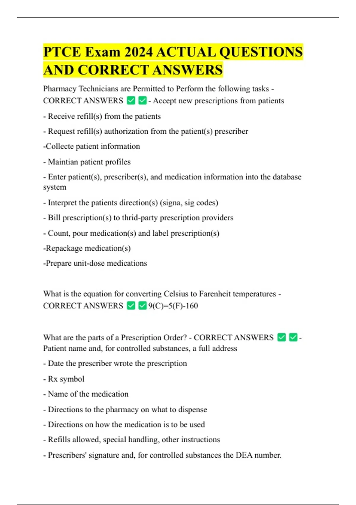 PTCE Exam 2024 ACTUAL QUESTIONS AND CORRECT ANSWERS
