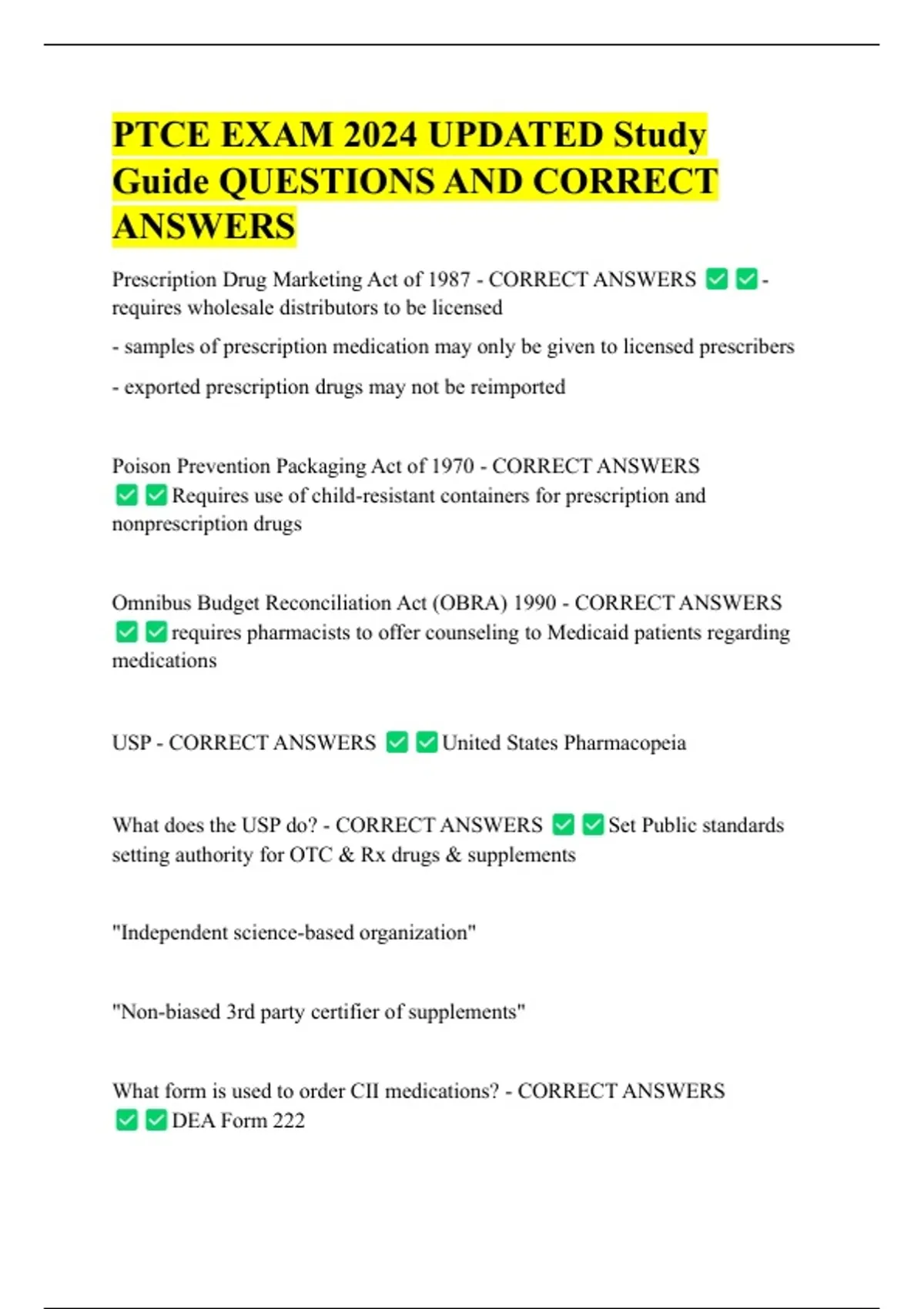 Prescription Drug Marketing Act of 1987 - CORRECT ANSWERS -