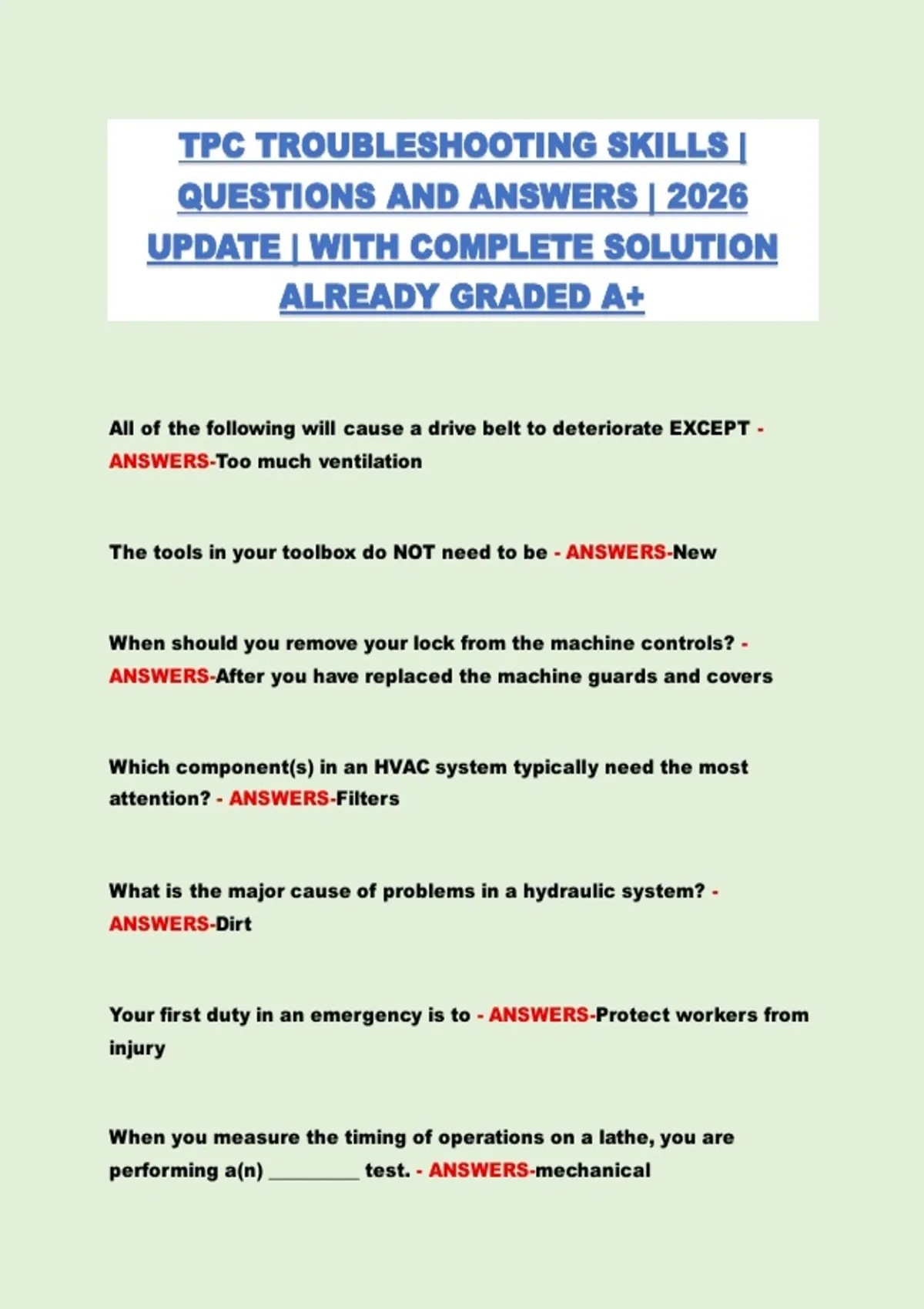 ANSWERS-After you have replaced the machine guards and covers