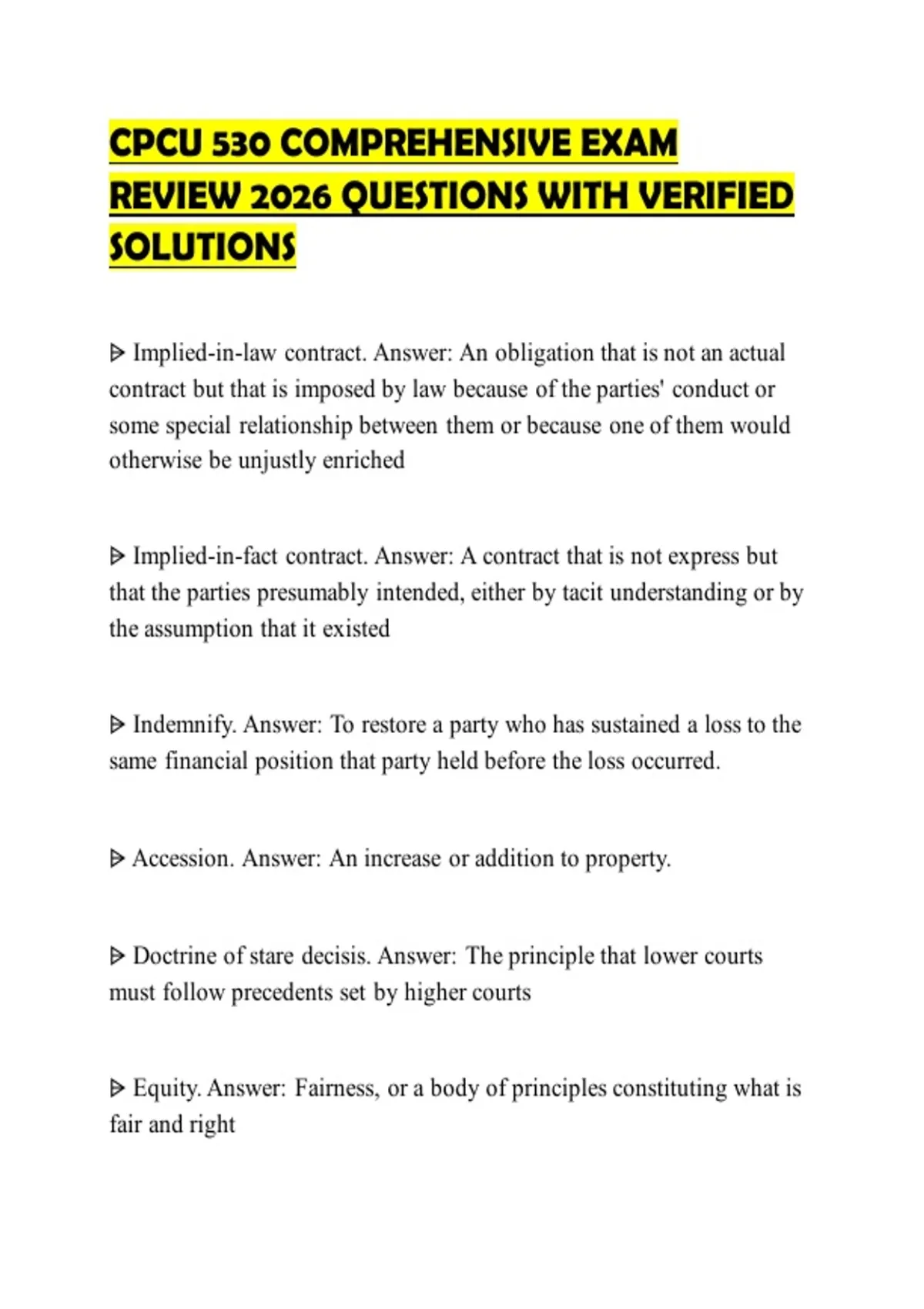 CPCU 530 COMPREHENSIVE EXAM REVIEW 2026 QUESTIONS WITH VERIFIED SOLUTIONS