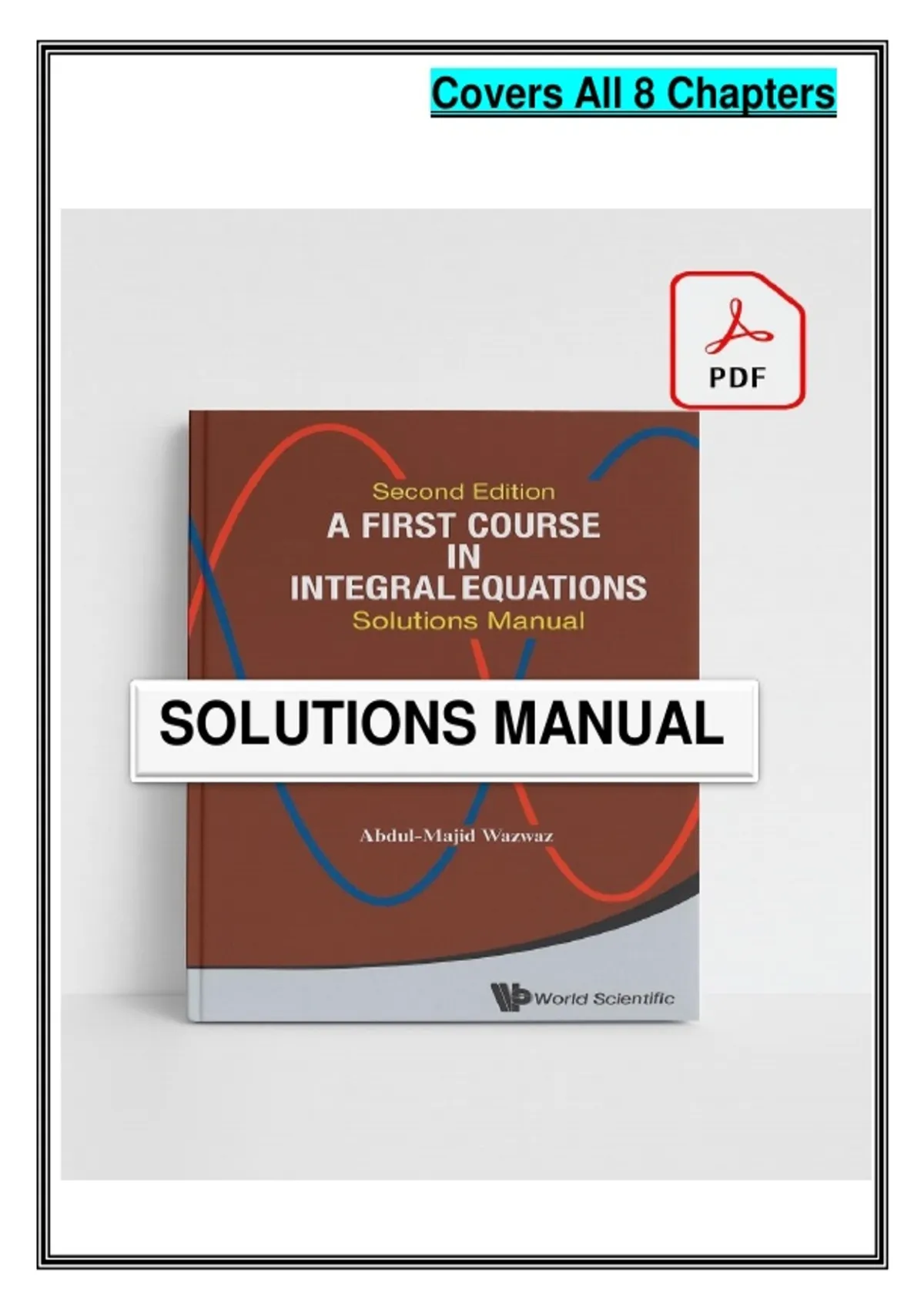 This comprehensive Solutions Manual provides complete, step-by-step solutions for all exercises and problems across the 8 core chapters of the textbook, A First Course in Integral Equations (Second Edition) by Abdul-Majid Wazwaz (ISBN: 978-981-4675-15-4). This document is an indispensable resource for advanced undergraduate and graduate students in Applied Mathematics, Physics, and Engineering. It covers fundamental concepts and solution methods for linear and nonlinear Fredholm and Volterra integral equations of both the first and second kinds. The solutions are meticulously detailed, focusing on key techniques like the Adomian Decomposition Method (ADM), the Variational Iteration Method (VIM), and the Series Solution Method. The manual is designed to help students master complex problem-solving approaches, understand theoretical concepts through practical application, and achieve excellent results in their coursework and research.